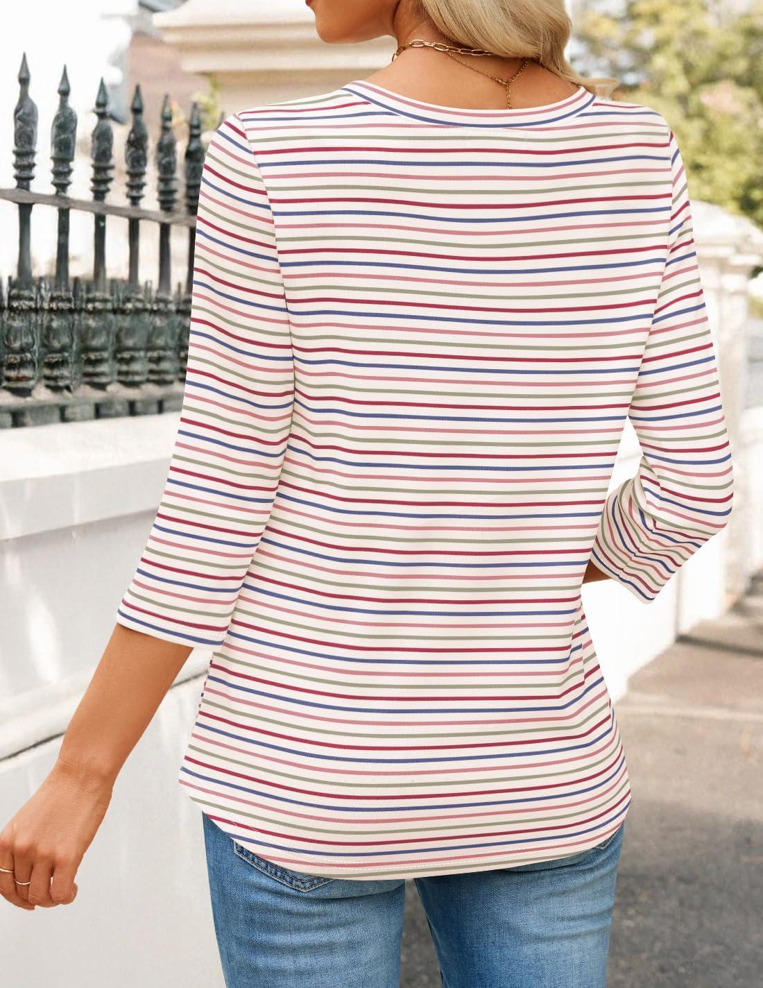 Be the first to review “ZESICA 3/4 Length Sleeve Womens Tops 2025 Fall Boho Striped Henley Shirts Dressy Casual Blouses(White)”