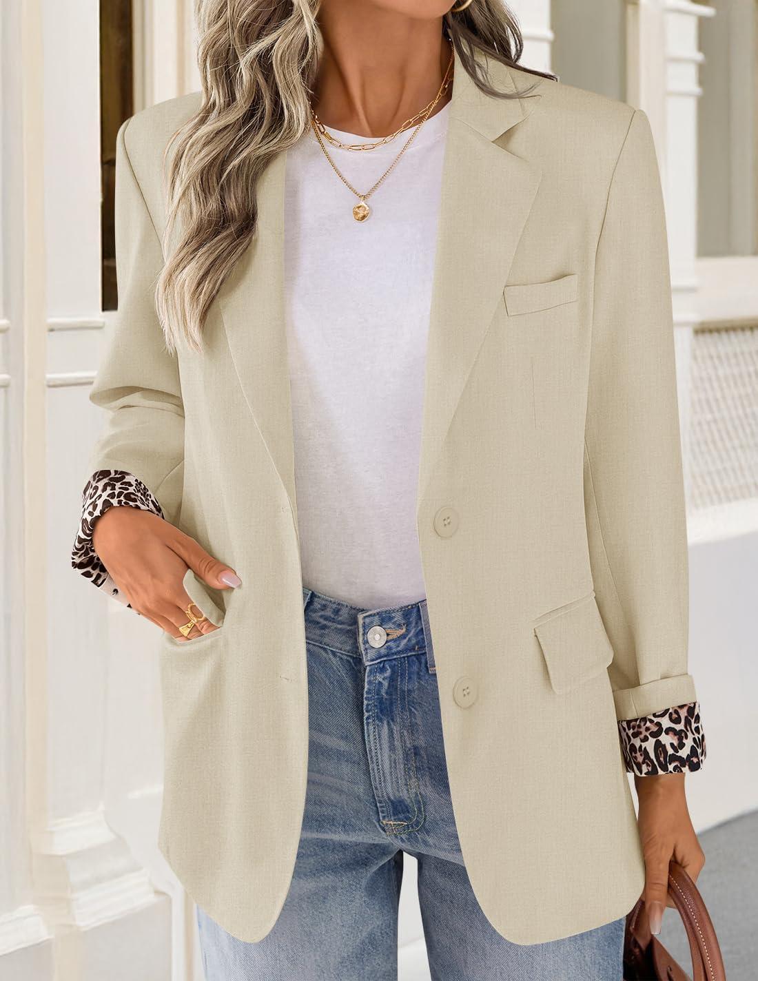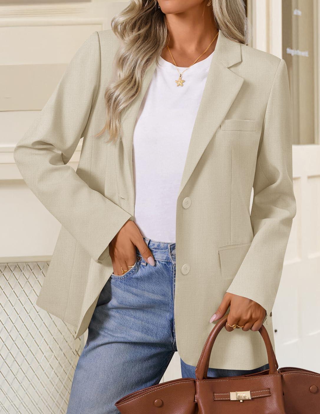ZESICA Business Casual Blazers for Women 2025 Fall Work Office Jackets Lapel Open Front Blazer Outfits with Pockets(Apricot)