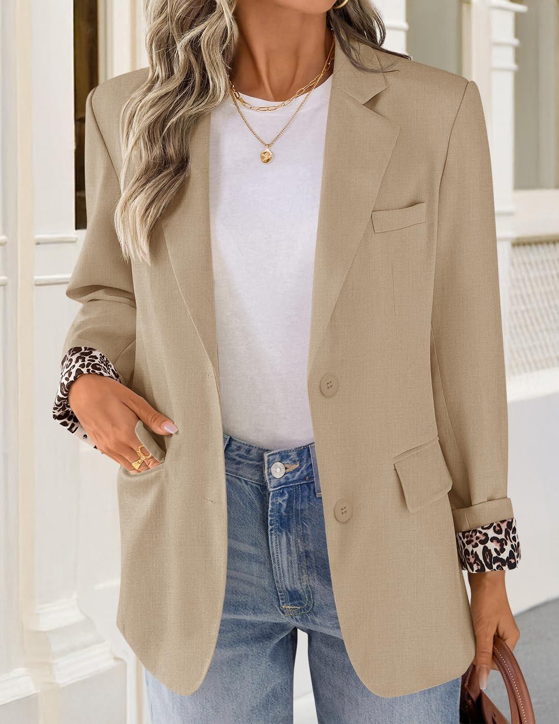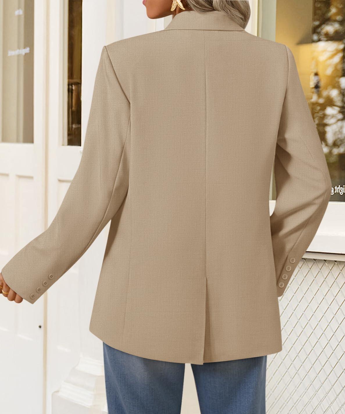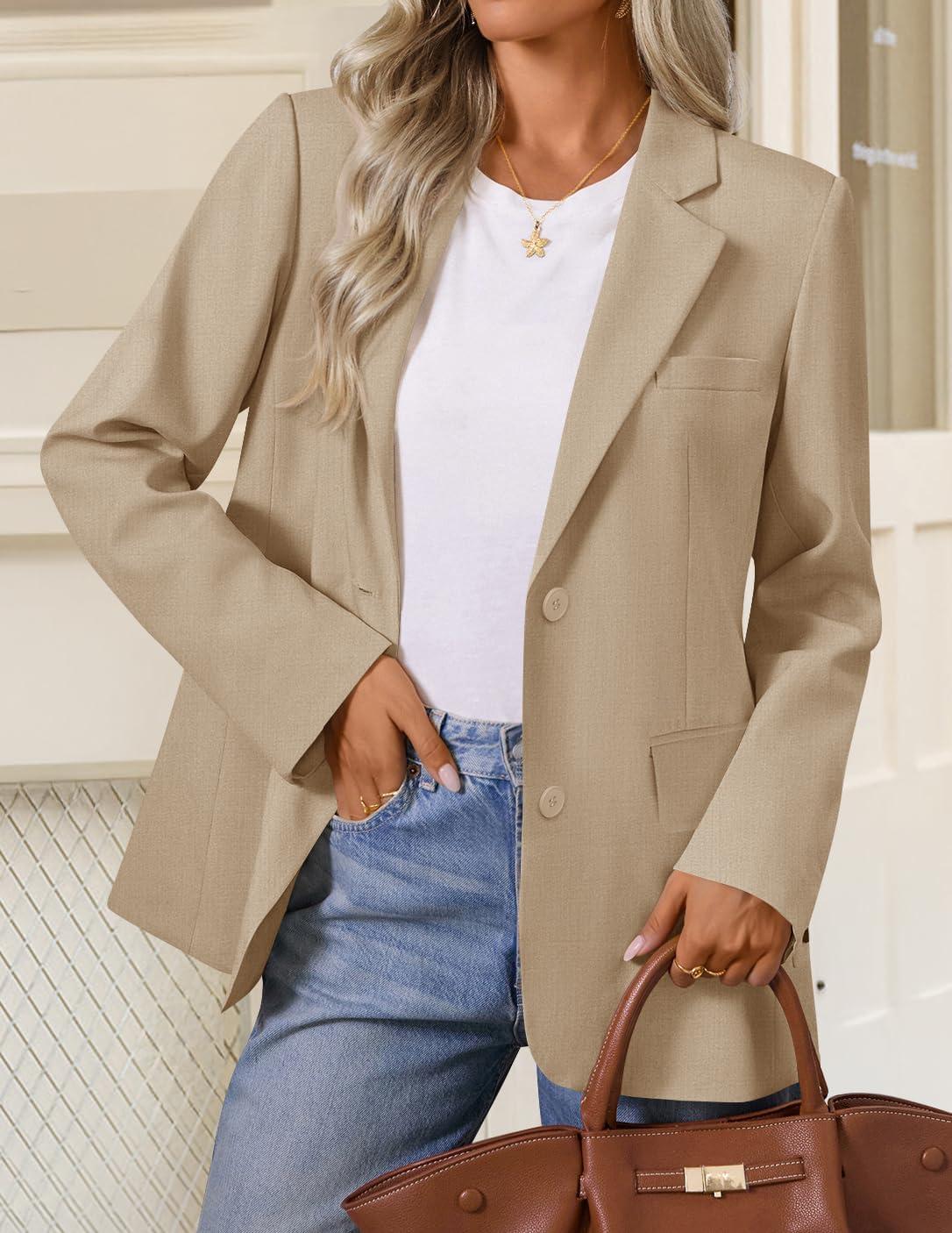 ZESICA Business Casual Blazers for Women 2025 Fall Work Office Jackets Lapel Open Front Blazer Outfits with Pockets(Khaki)