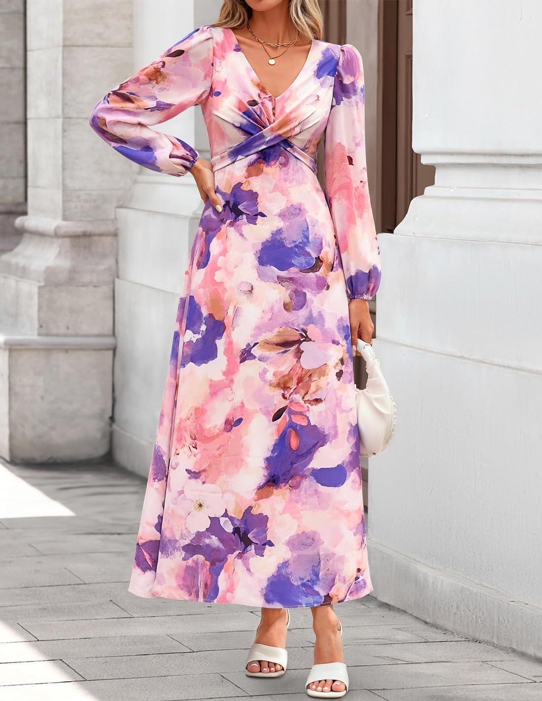 Get the ZESICA Fall Floral Dresses for Women 2025 Elegant Long Sleeve V Neck Mesh Cocktail Wedding Party Maxi Dress(Purple) you’ve been eyeing at a discounted price during our seasonal sale event.