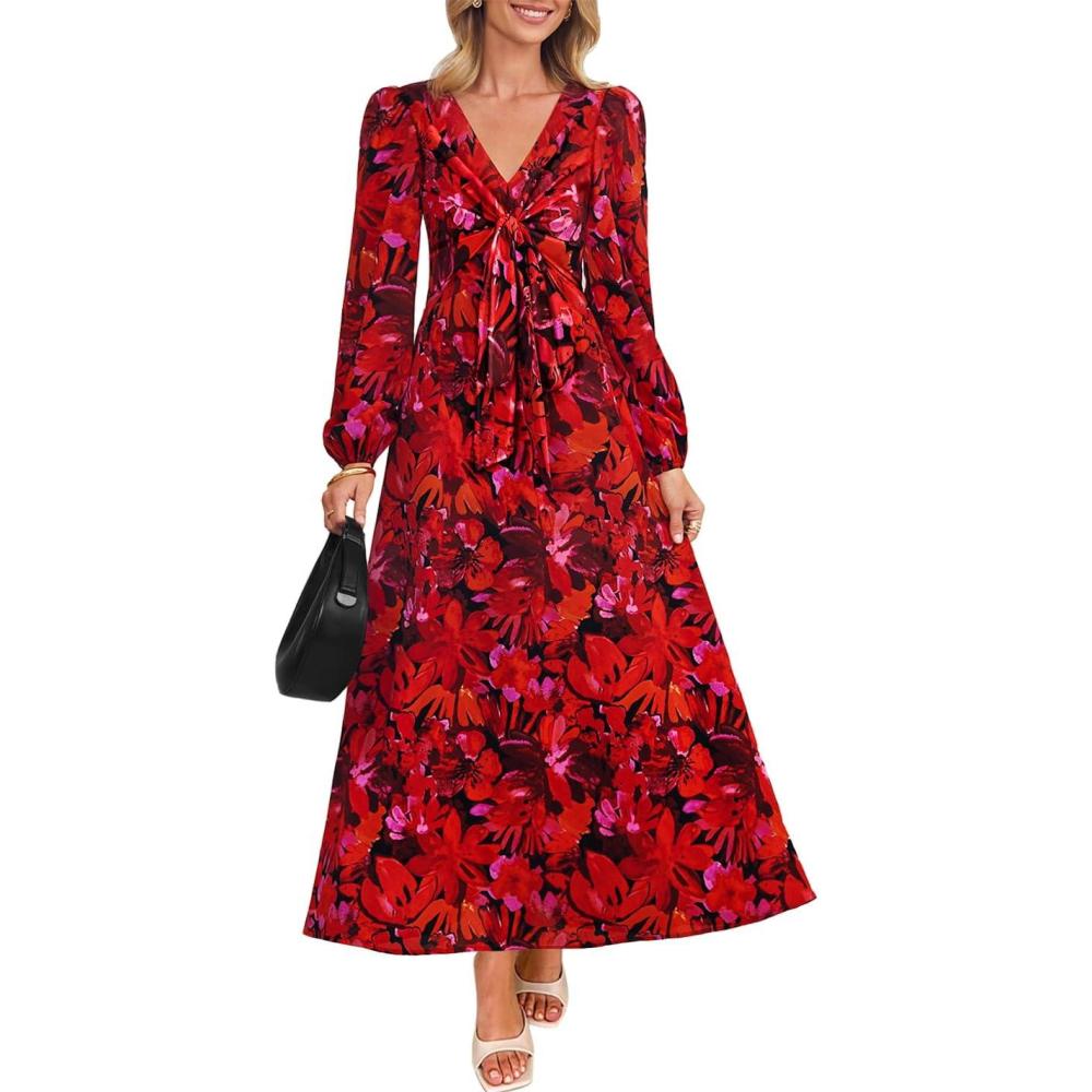 Be the first to review “ZESICA Fall Floral Dresses for Women 2025 Elegant Long Sleeve V Neck Mesh Cocktail Wedding Party Maxi Dress(Red)”