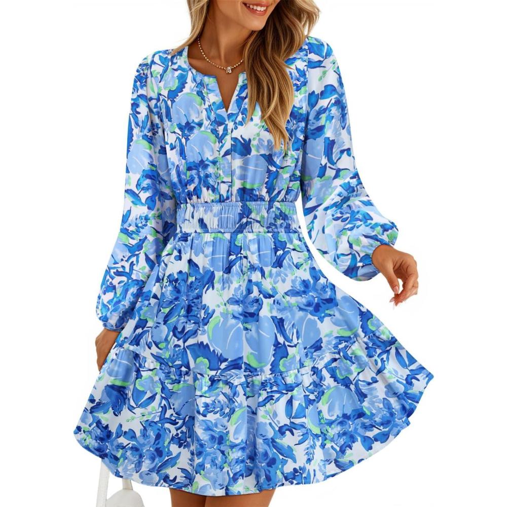Be the first to review “ZESICA Fall Long Sleeve Floral Dress for Women 2025 Casual V Neck Smocked A Line Flowy Boho Mini Dresses with Pockets(Blue)”