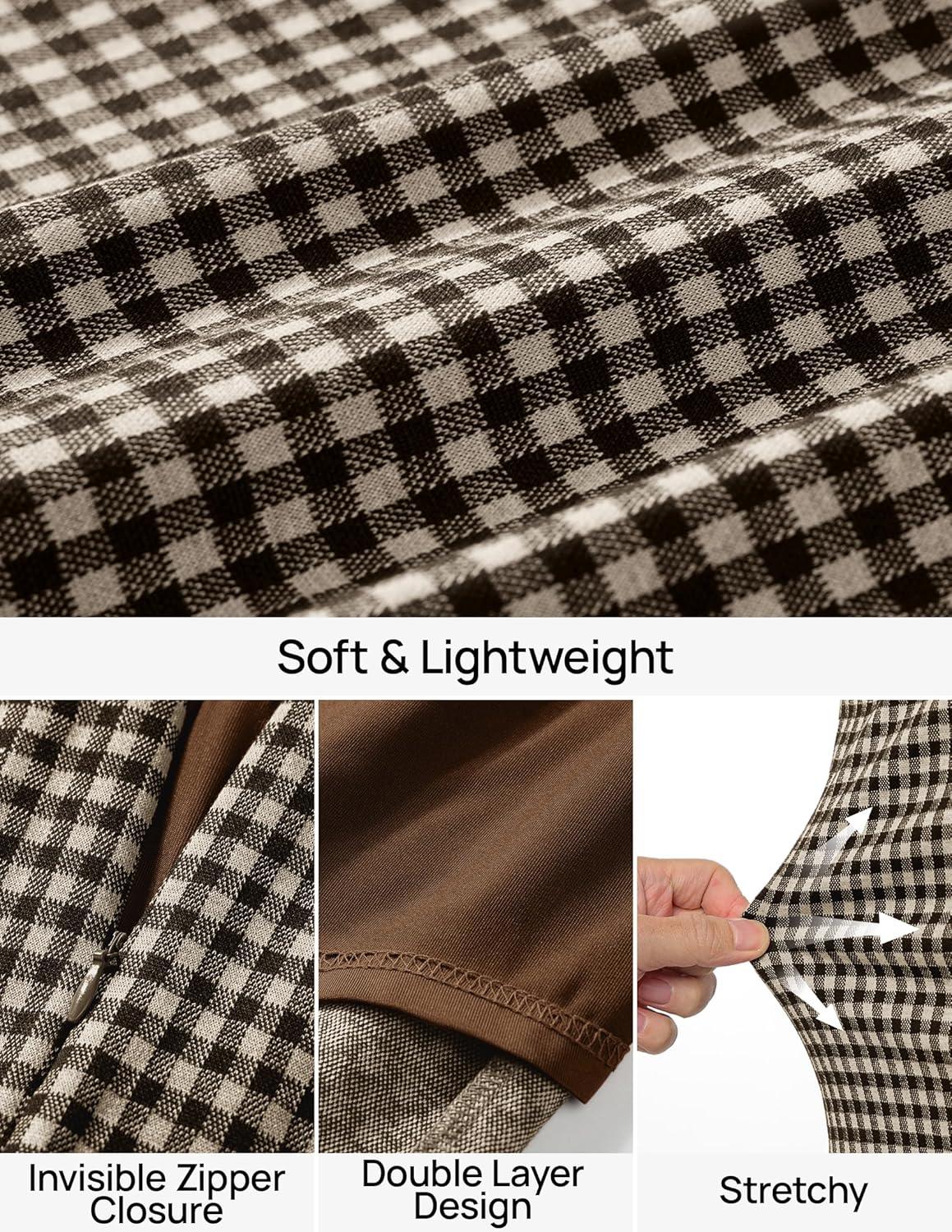 ZESICA Plaid Mini Skirt for Women 2025 Fall Winter High Waist A Line Bodycon Pencil Skirts Trendy(Mocha)
