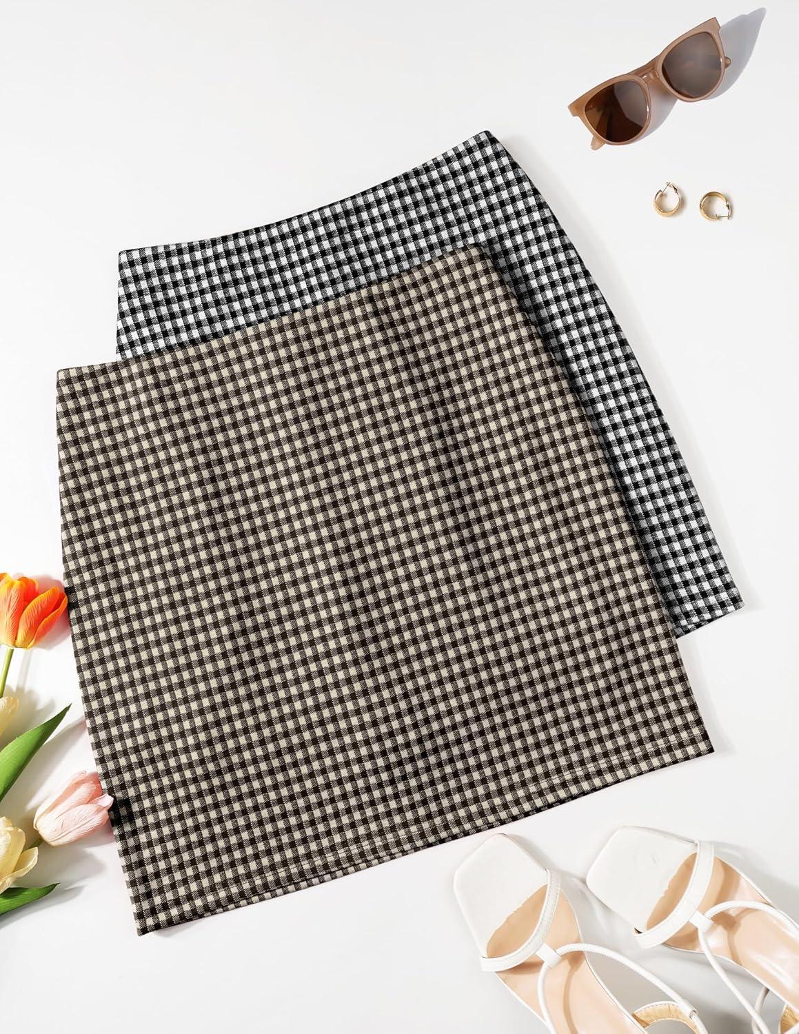 ZESICA Plaid Mini Skirt for Women 2025 Fall Winter High Waist A Line Bodycon Pencil Skirts Trendy(Black)
