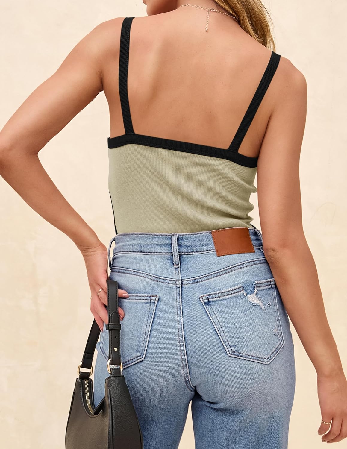 ZESICA Sleeveless Tops for Women Summer Spaghetti Straps Crop Tank Top Ribbed Knit T Shirts Slim Fit Camisole 2024 Fashion(Dustyblue)