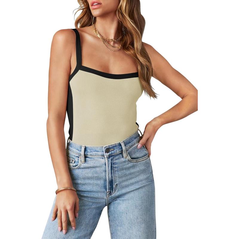 ZESICA Sleeveless Tops for Women Summer Spaghetti Straps Crop Tank Top Ribbed Knit T Shirts Slim Fit Camisole 2024 FashionSand