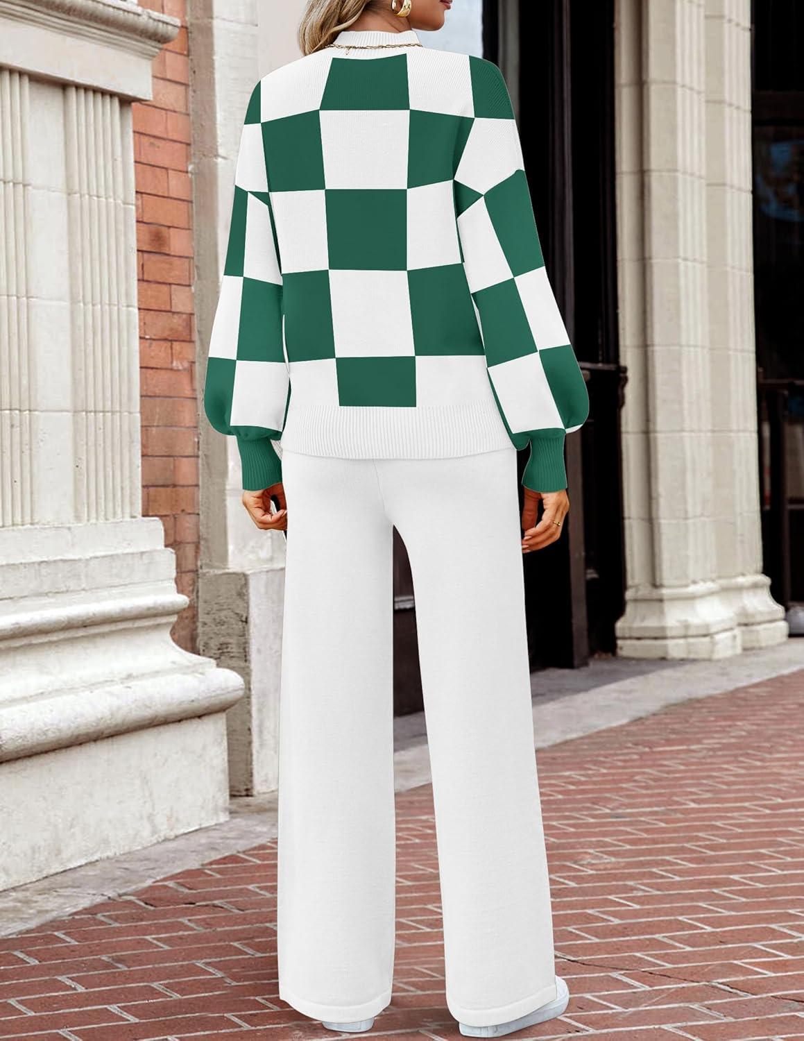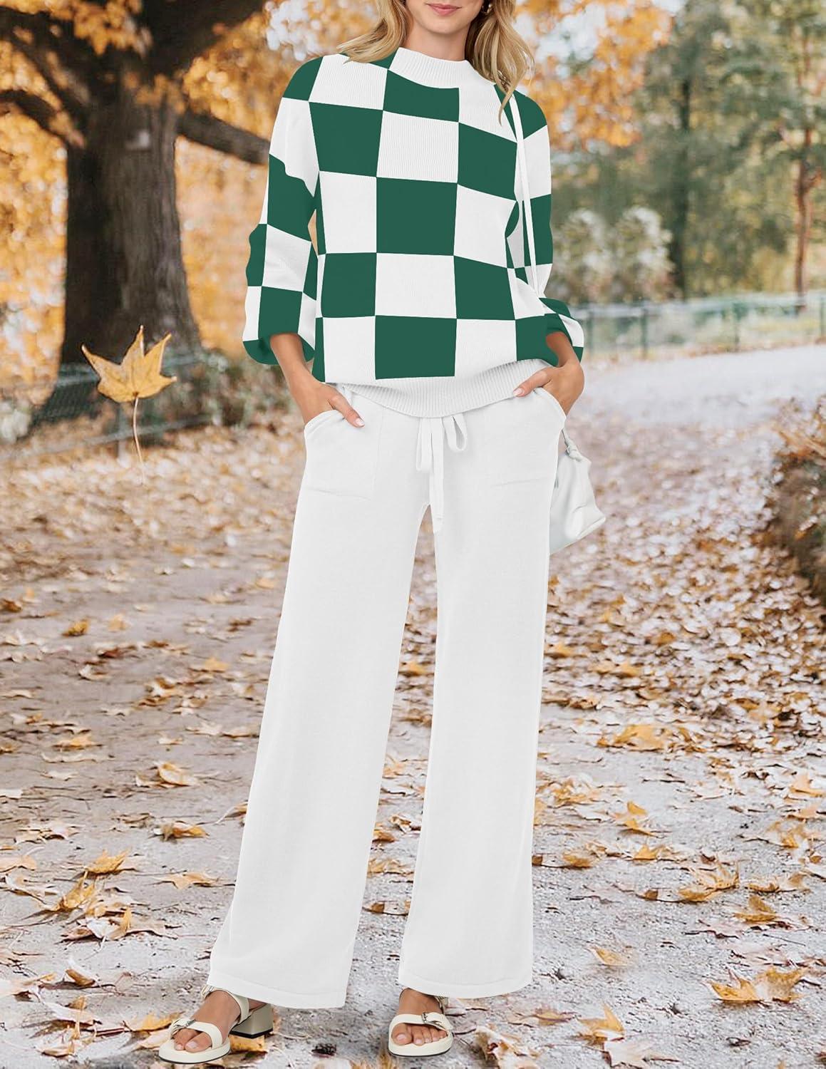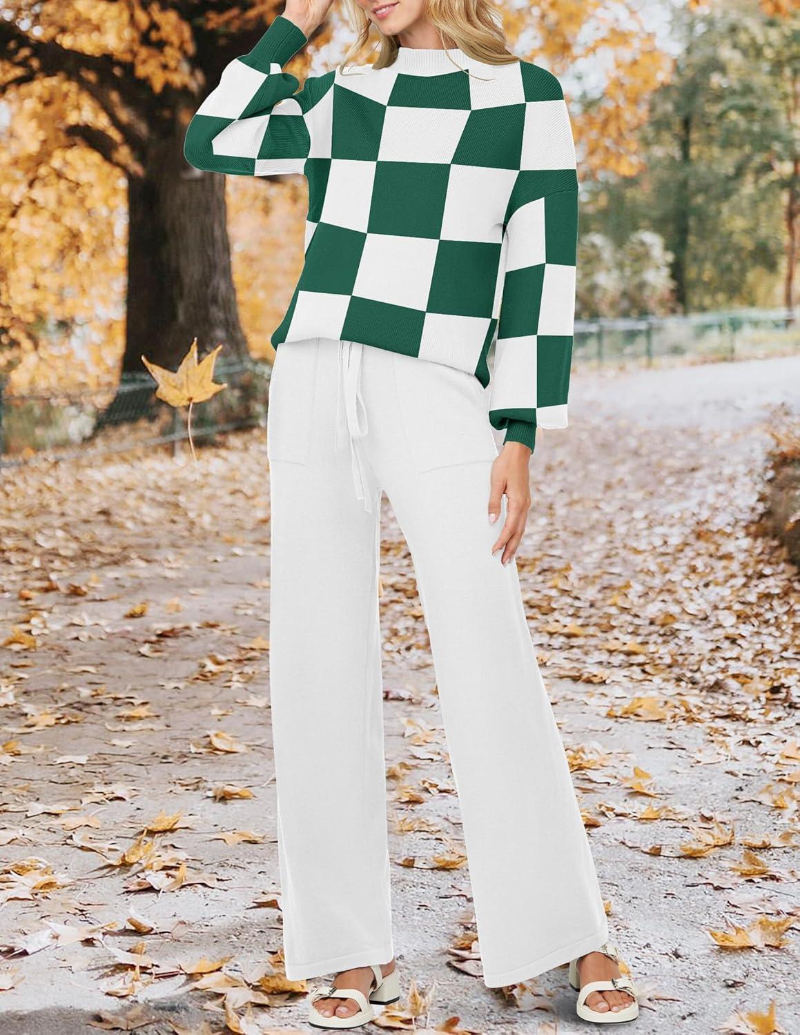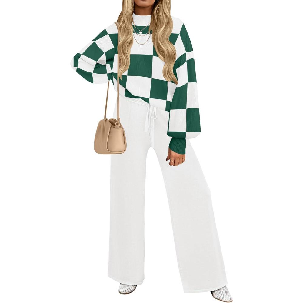 Get the ZESICA Women’s 2 Piece Outfits Sweater Set Long Sleeve Mock Neck Knit Pullover and Wide Leg Pants Lounge Sweatsuit Sets(Greenplaid) you want at a discounted price during our markdown sale event.