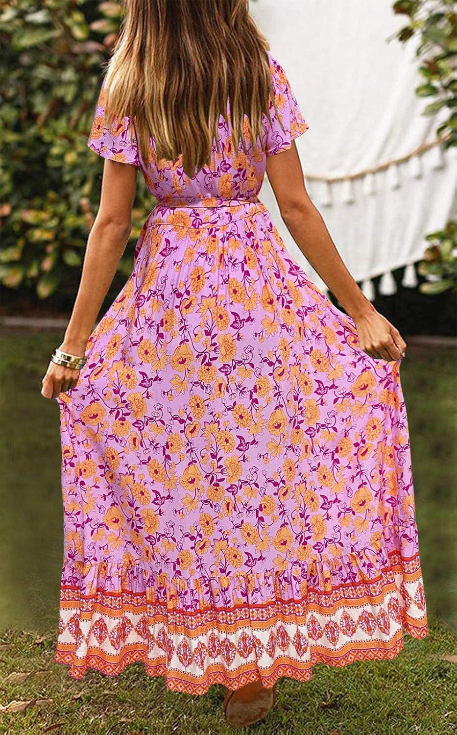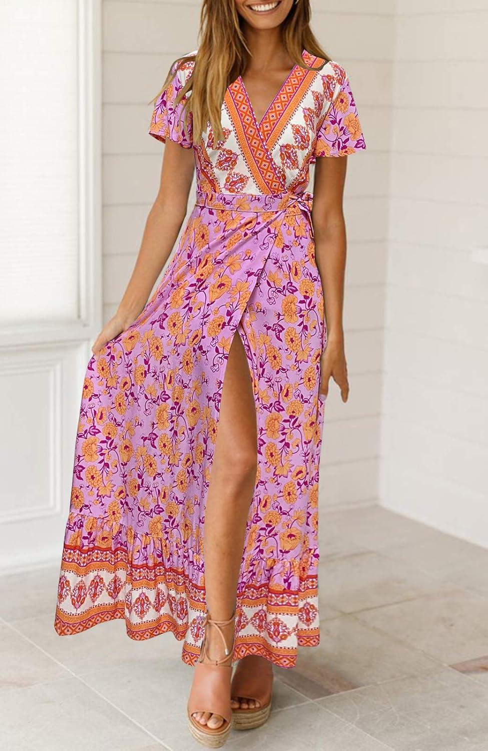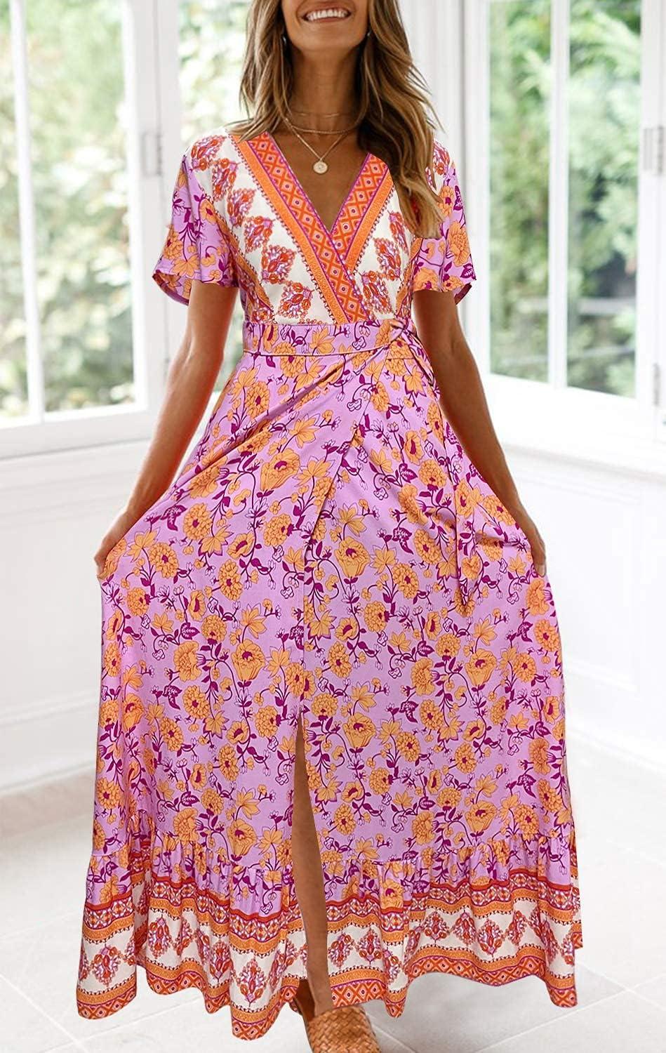 Item model number : ZESICA Bohemian V-Neck Split Wrap Dress