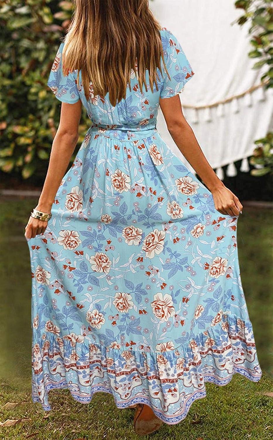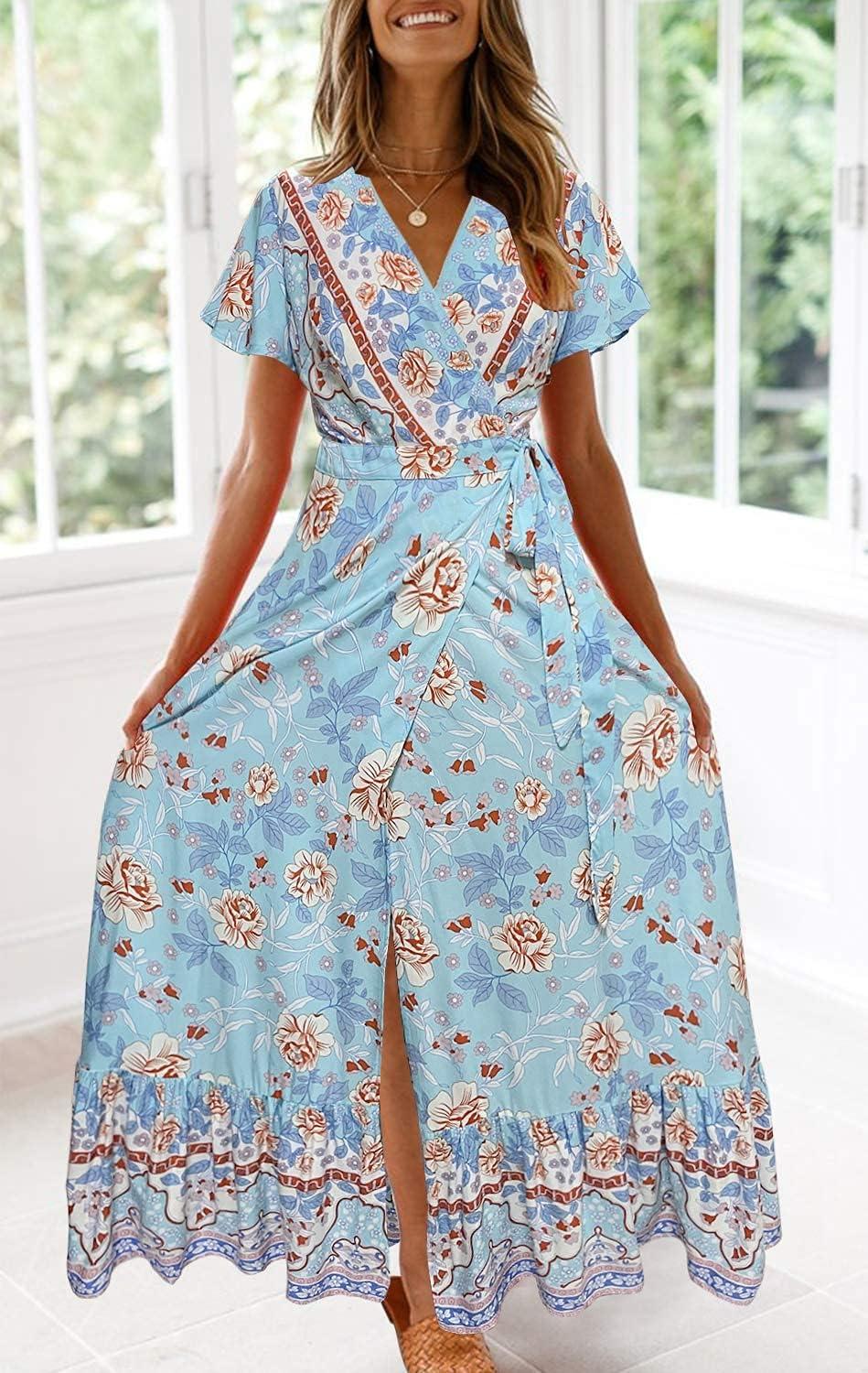 Item model number : ZESICA Bohemian V-Neck Split Wrap Dress