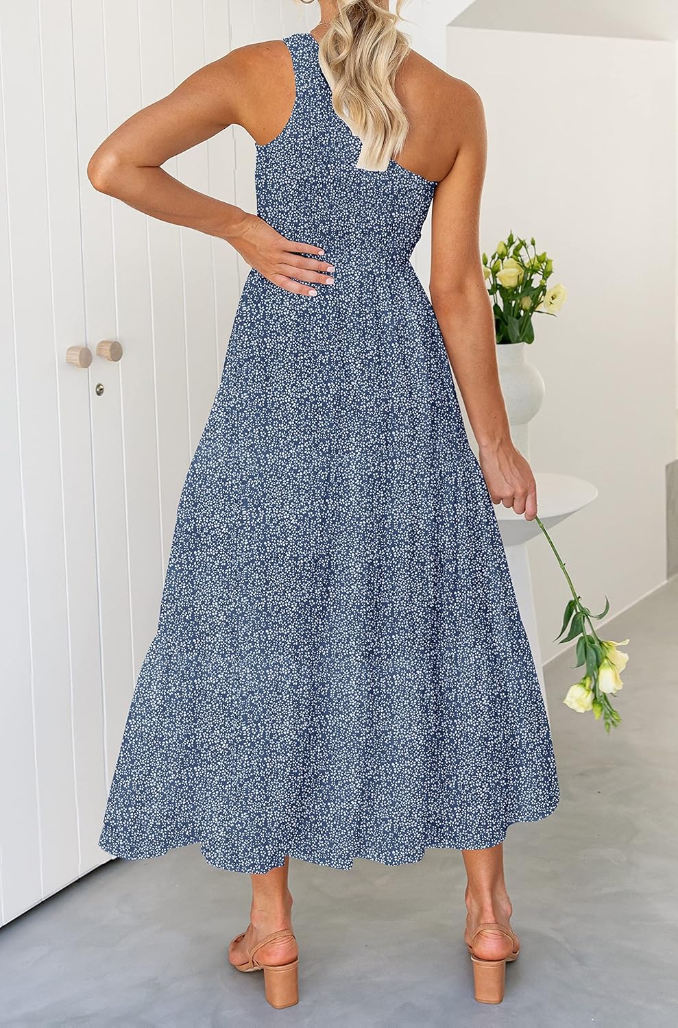 Be the first to review “ZESICA Women’s 2024 Bohemian Summer Floral Print One Shoulder Sleeveless Smocked Ruffle Tiered Beach Long Midi Dress(Dustyblue)”