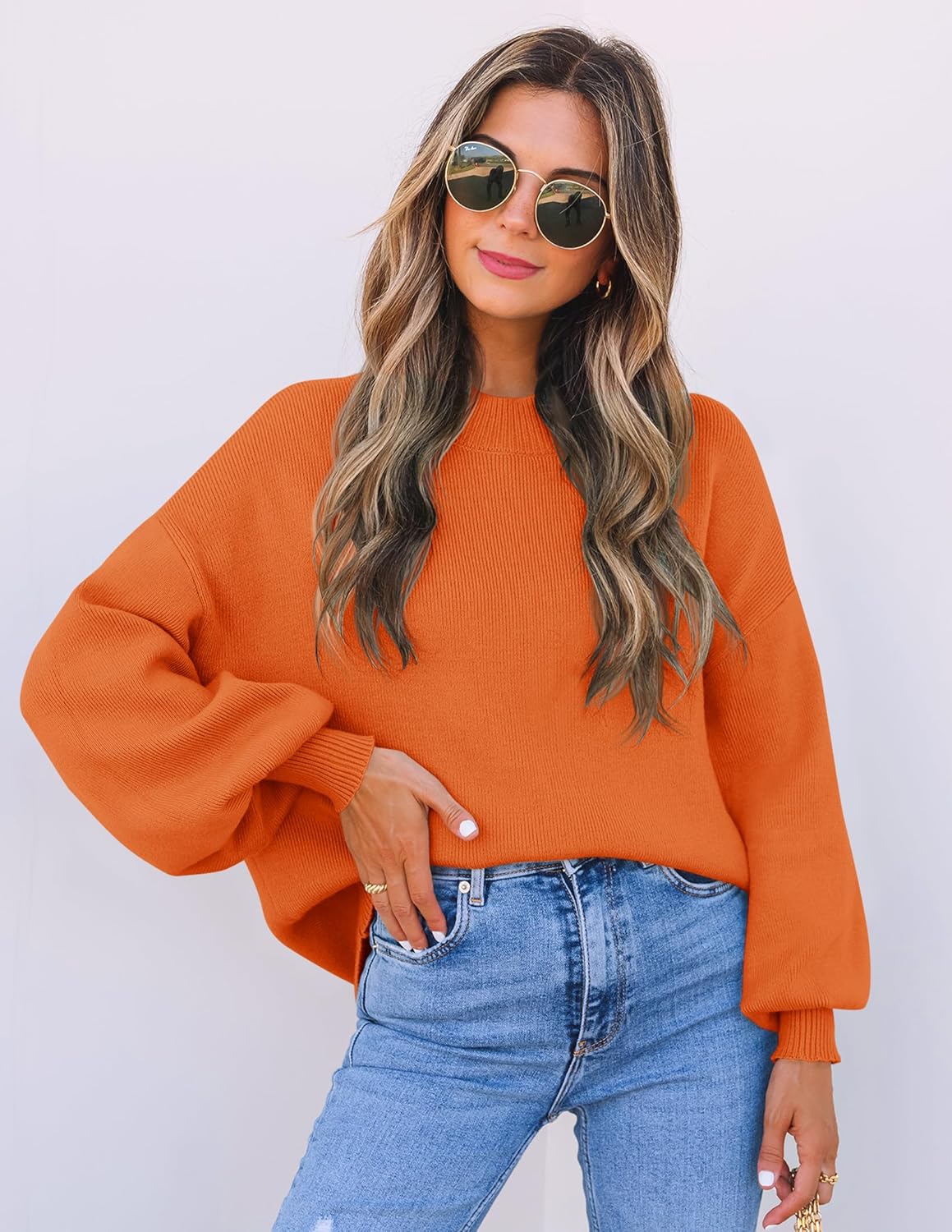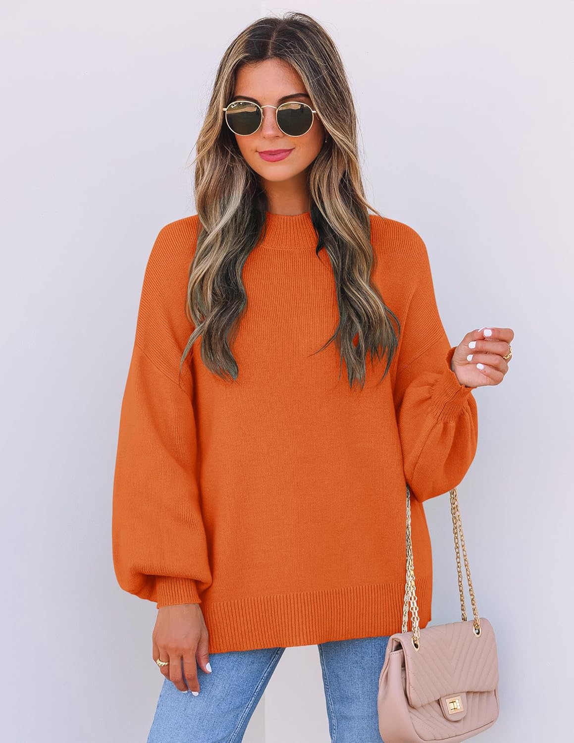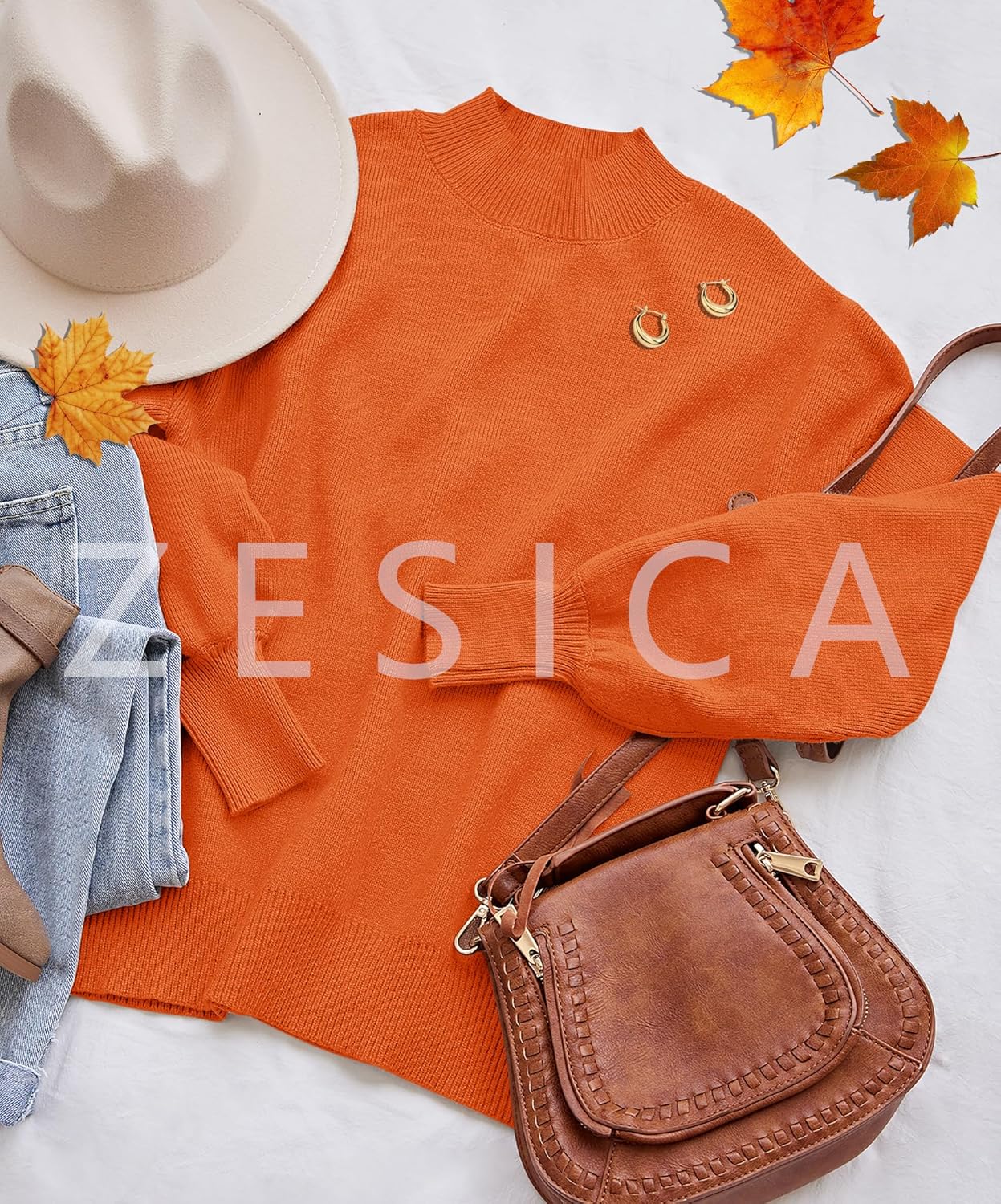 Save big on ZESICA Women’s 2024 Casual Turtleneck Long Lantern Sleeve Oversized Ribbed Knit Pullover Sweater Jumper Top(Orange) during our summer blowout sale. Limited quantities available.