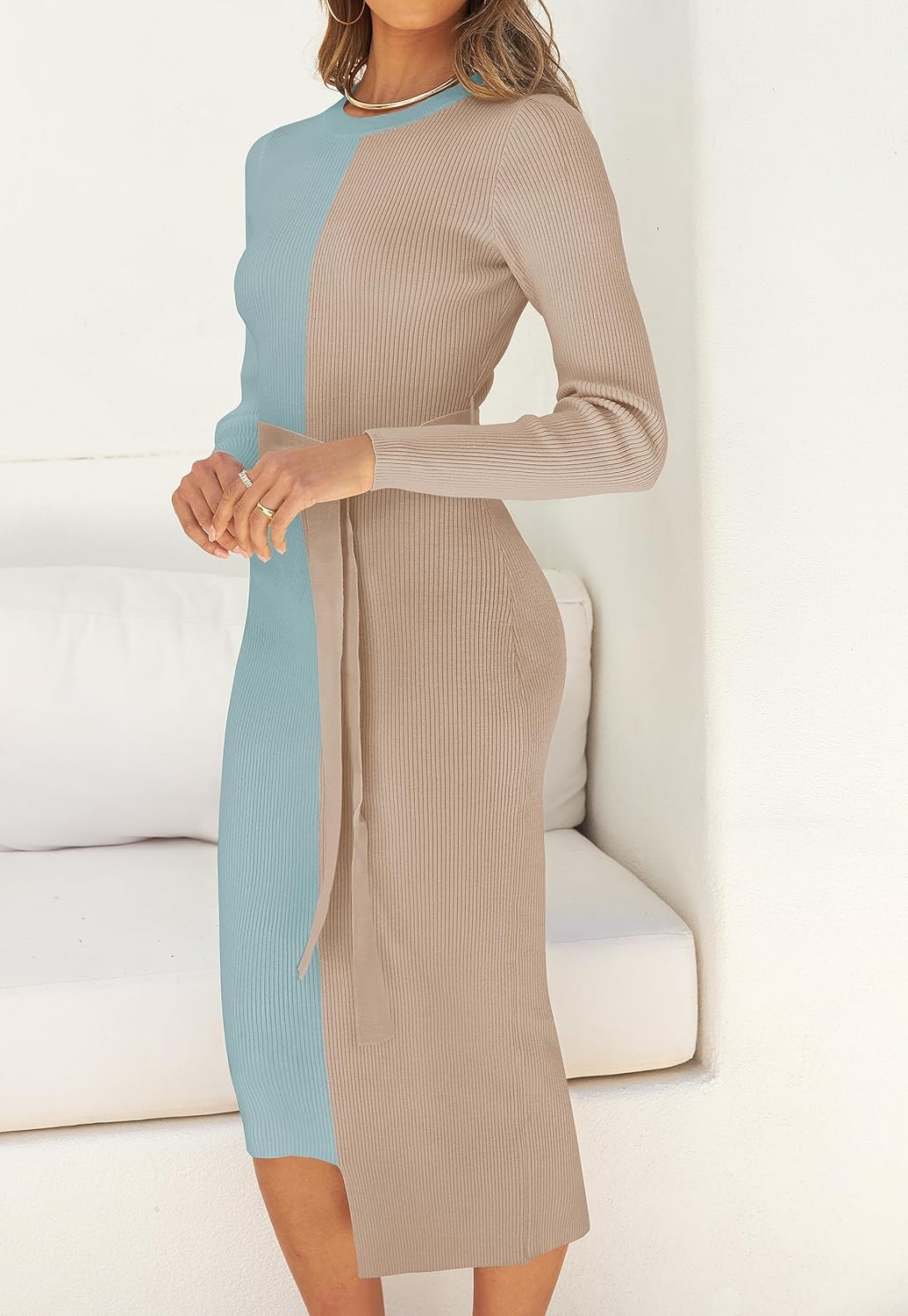 Get your hands on our exclusive ZESICA Women’s 2024 Fall Ribbed Knit Sweater Dress Elegant Long Sleeve Crewneck Tie Waist Slim Fit Bodycon Midi Dresses(Sage) collection, now at a discounted price.