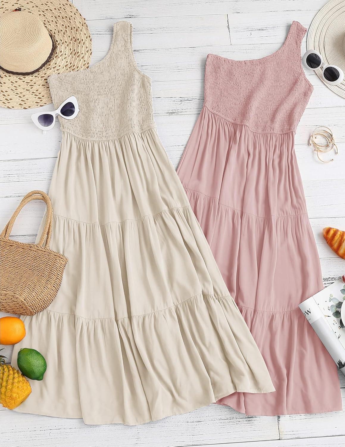 Be the first to review “ZESICA Women’s 2025 Bohemian Summer Floral Print One Shoulder Sleeveless Smocked Ruffle Tiered Beach Long Midi Dress(Beige)”