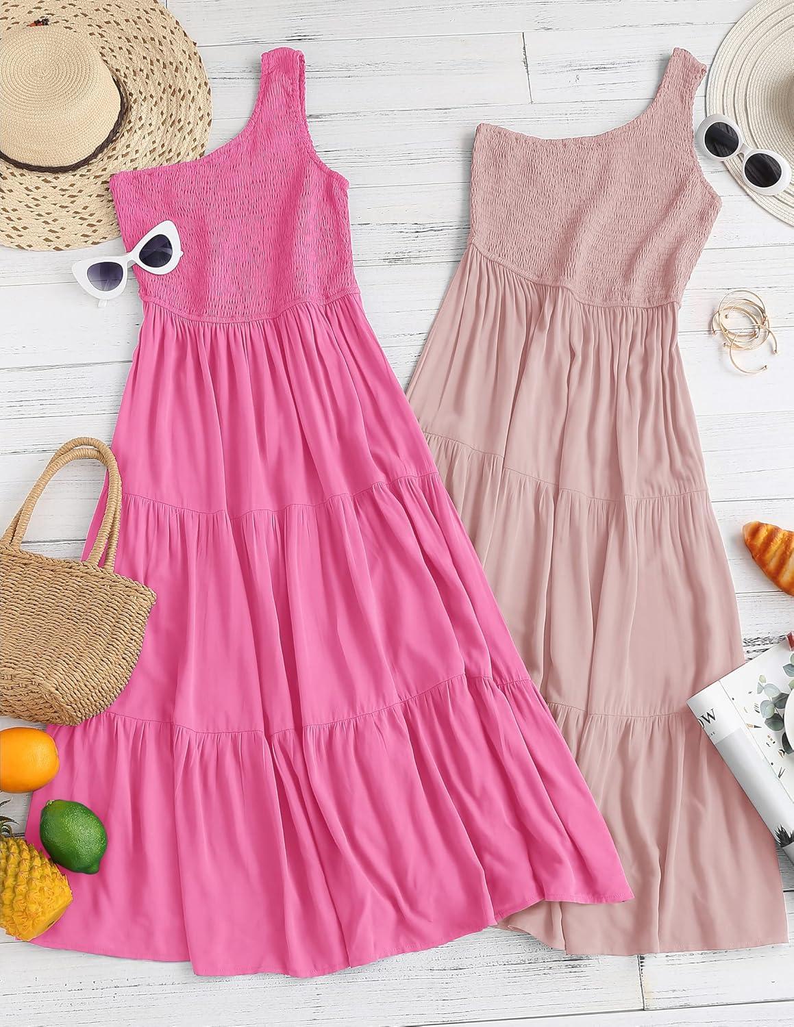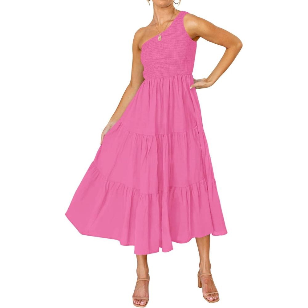 Save big on ZESICA Women’s 2025 Bohemian Summer Floral Print One Shoulder Sleeveless Smocked Ruffle Tiered Beach Long Midi Dress(Hotpink) and accessories during our BOGO sale. Buy one, get one 50% off!