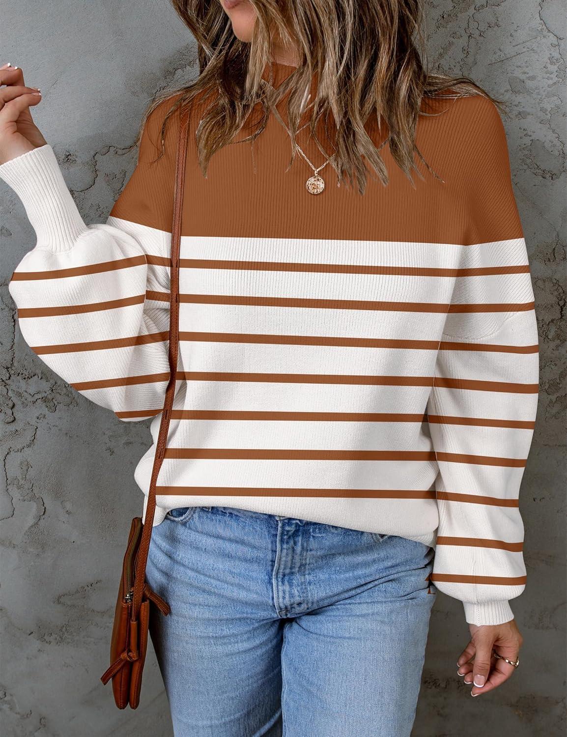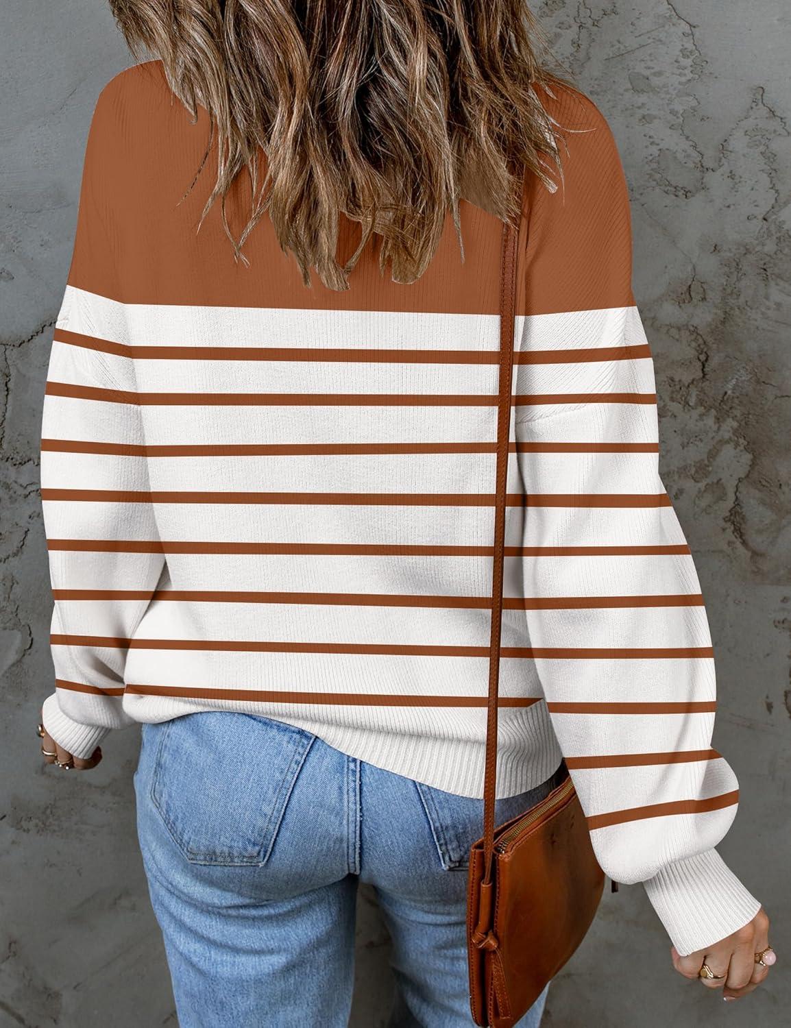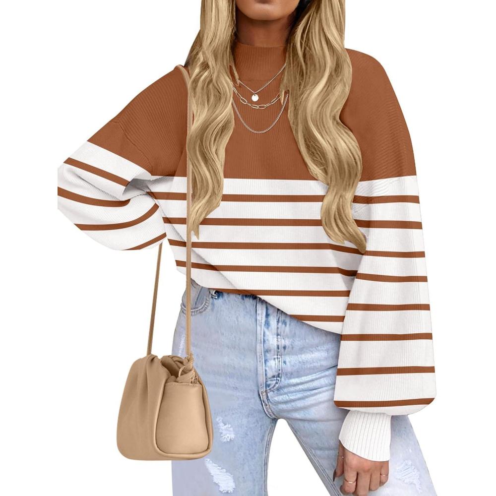ZESICA Women's 2025 Fall Fashion Turtleneck Long Sleeve Striped Ribbed Knit Loose Pullover Sweater Tops(Caramel)