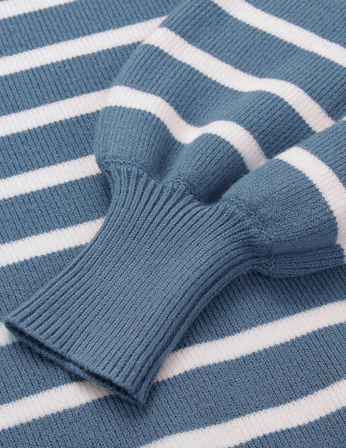 imageZESICA Womens 2025 Fall Fashion Turtleneck Long Sleeve Striped Ribbed Knit Loose Pullover Sweater TopsDarkblue