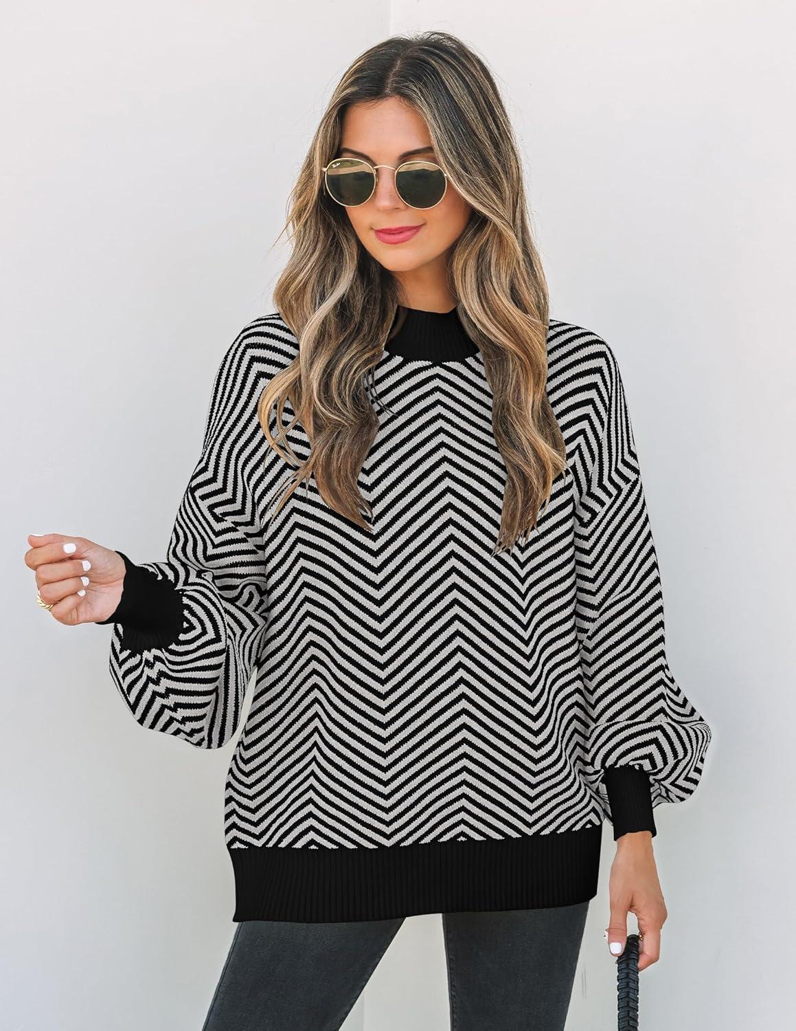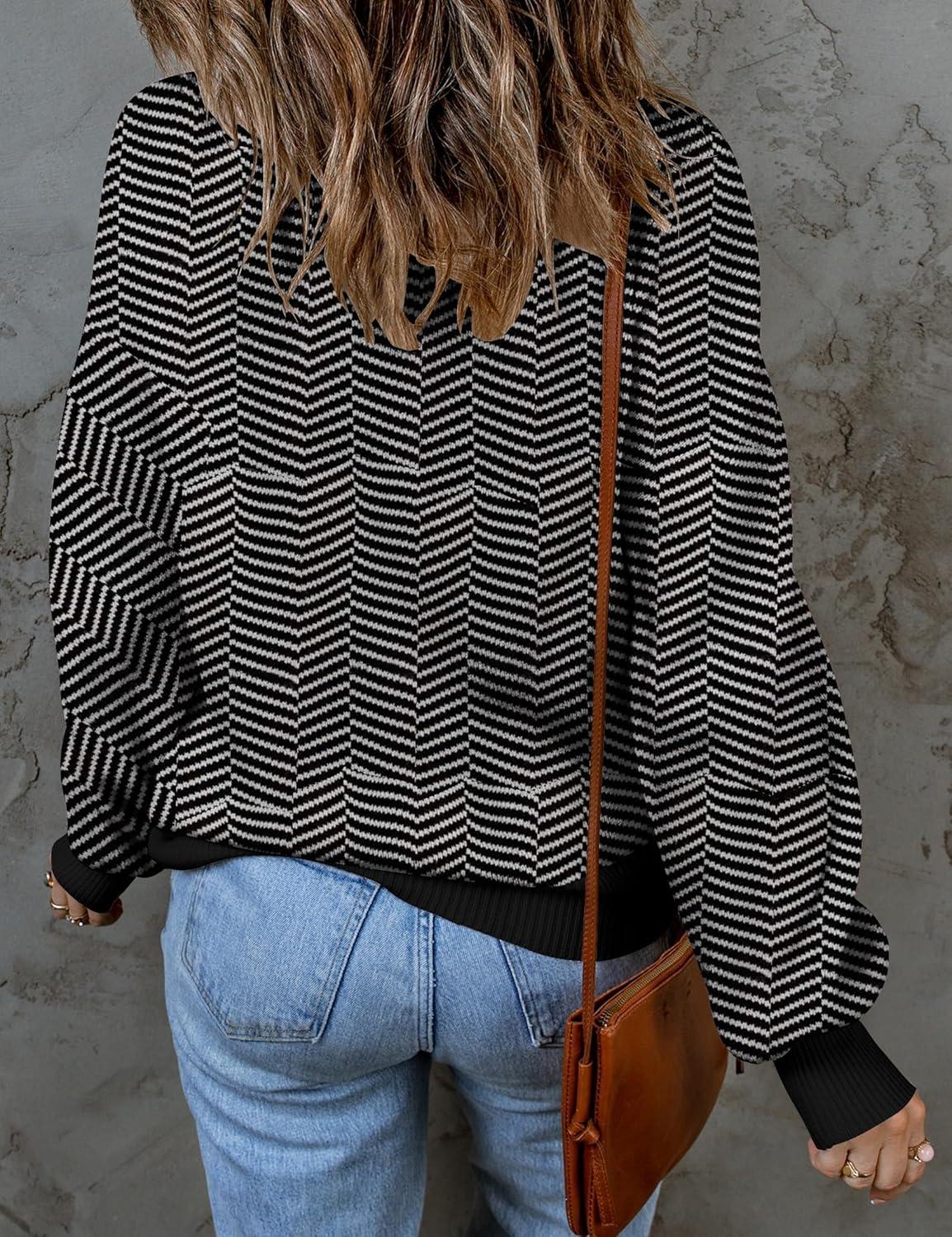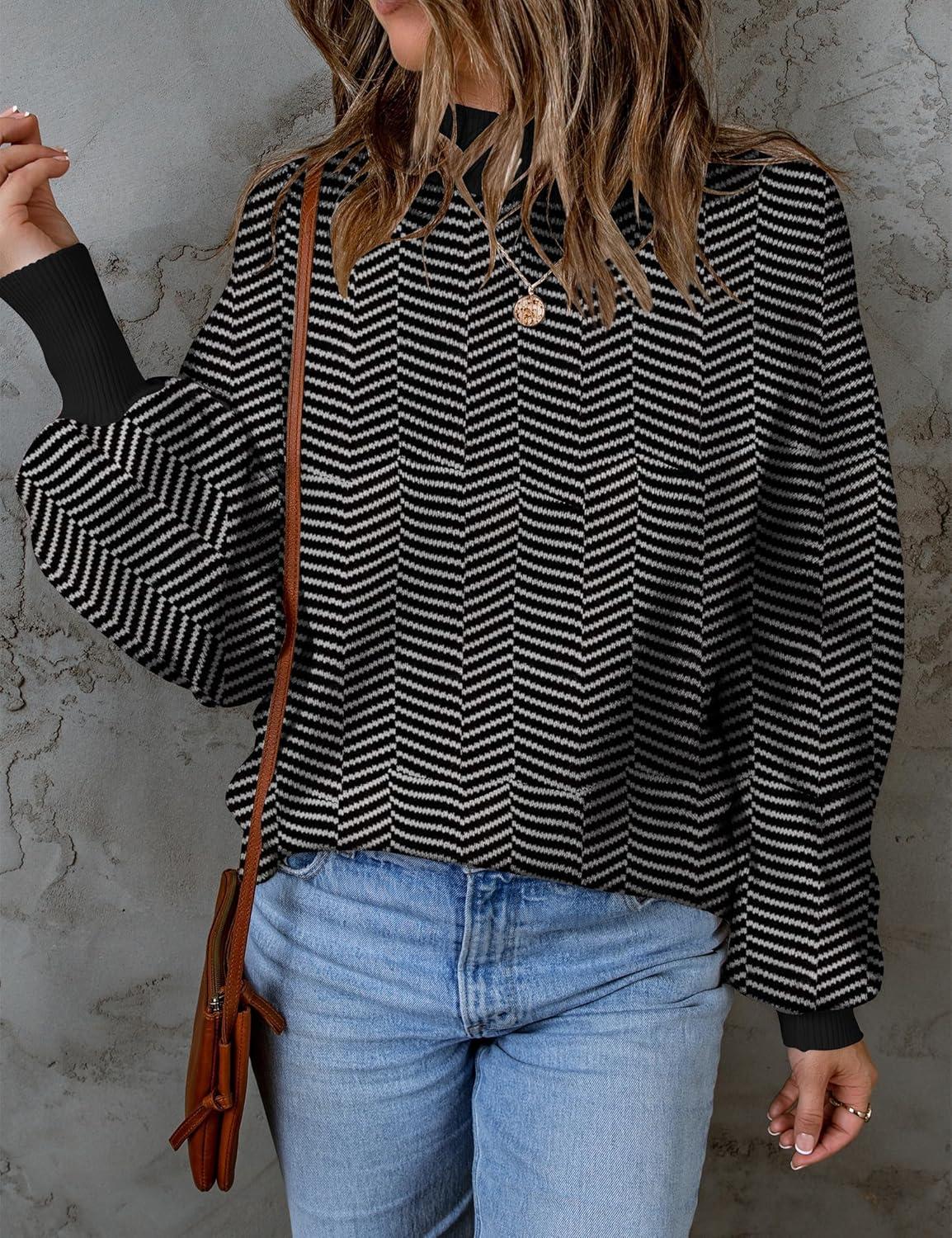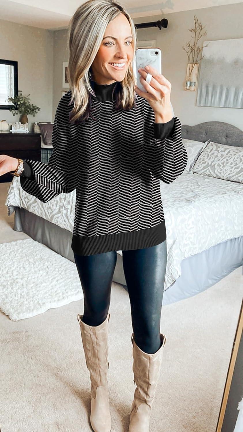 ZESICA Women’s 2025 Fall Fashion Turtleneck Long Sleeve Striped Ribbed Knit Loose Pullover Sweater Tops(Dim)