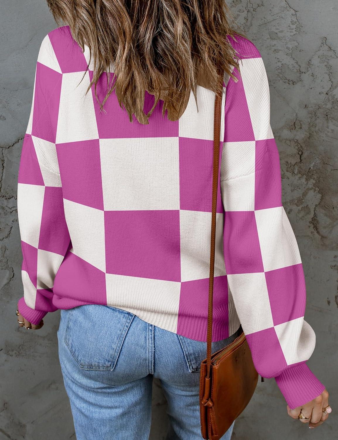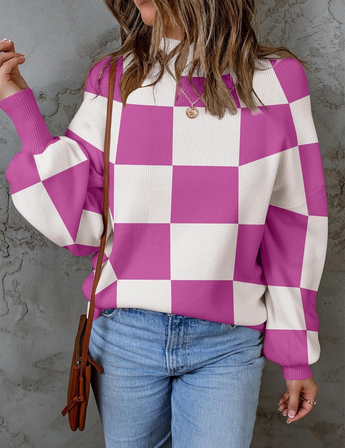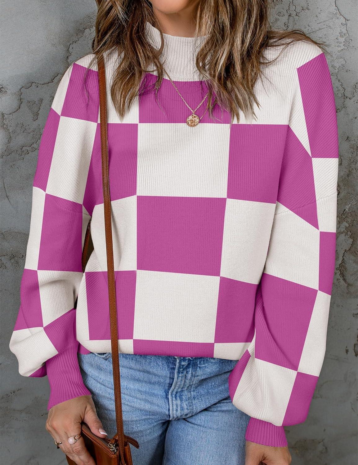 ZESICA Women’s 2025 Fall Fashion Turtleneck Long Sleeve Striped Ribbed Knit Loose Pullover Sweater Tops(Khakiplaid)