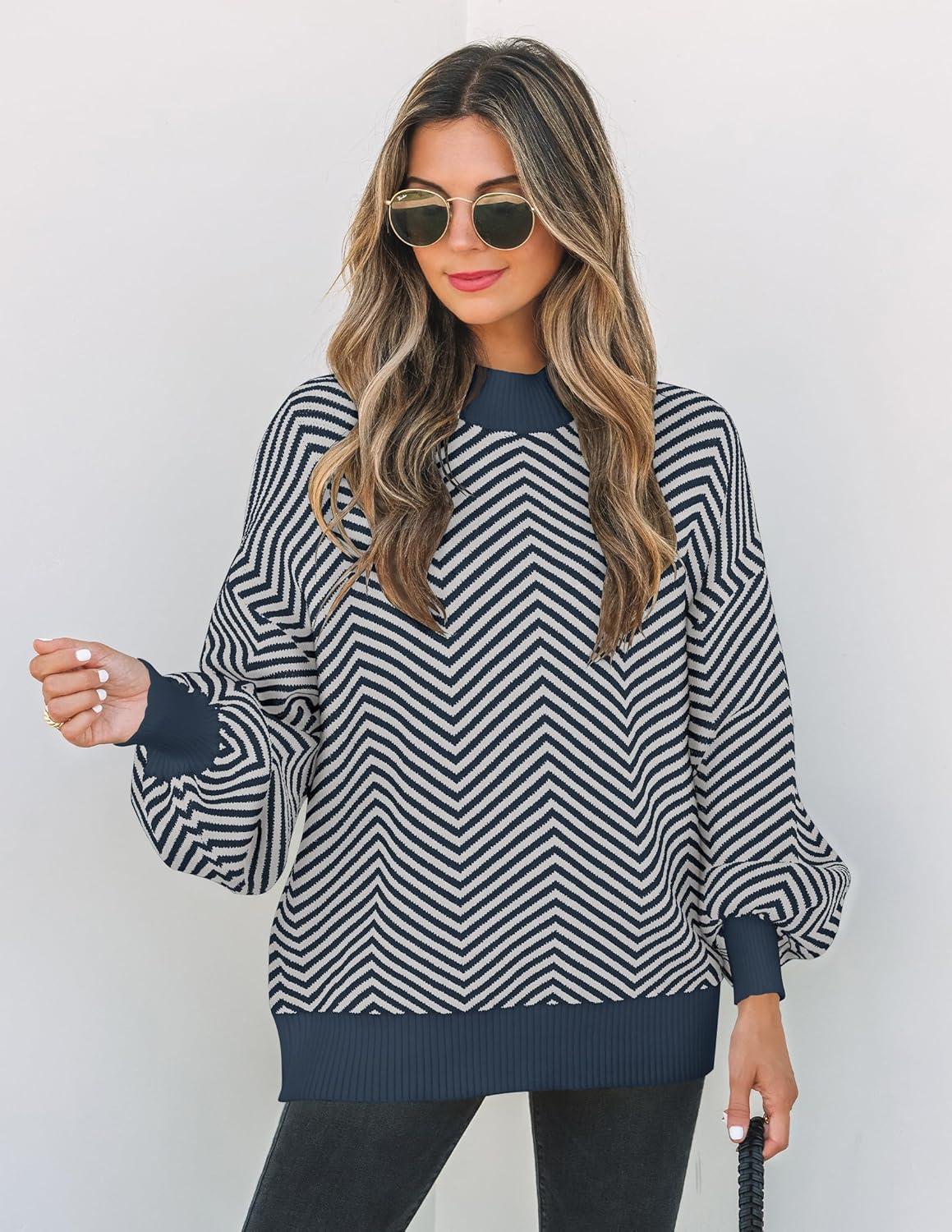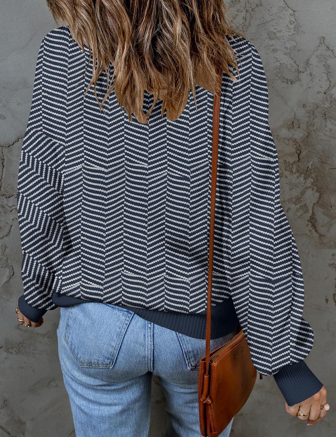 ZESICA Women’s 2025 Fall Fashion Turtleneck Long Sleeve Striped Ribbed Knit Loose Pullover Sweater Tops(Navystripe)