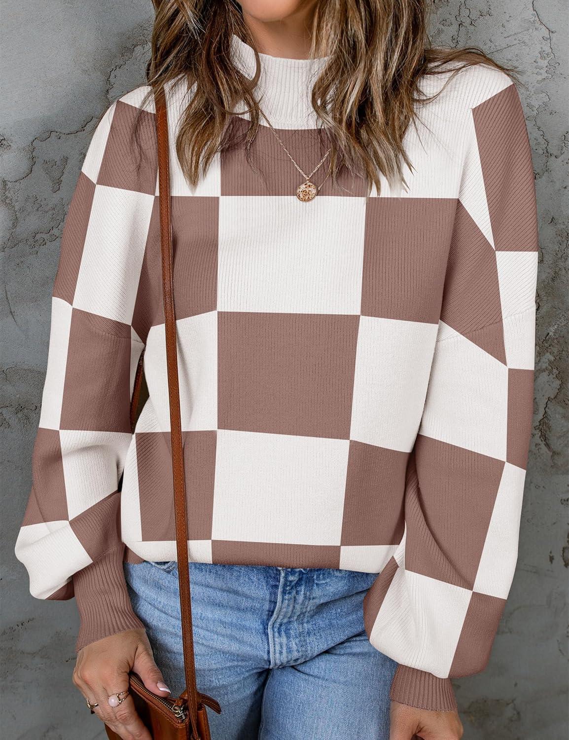 ZESICA Women’s 2025 Fall Fashion Turtleneck Long Sleeve Striped Ribbed Knit Loose Pullover Sweater Tops(Nutmeg)