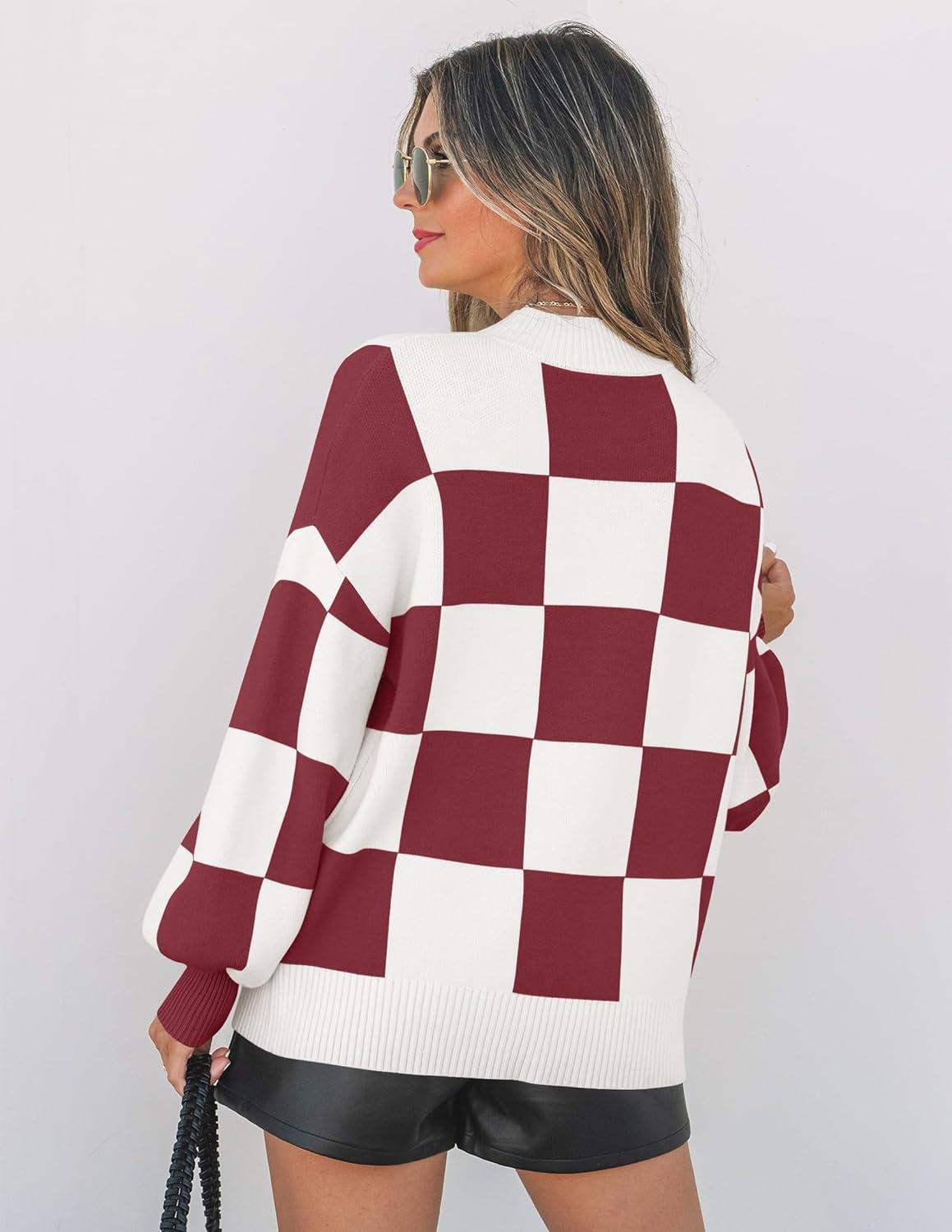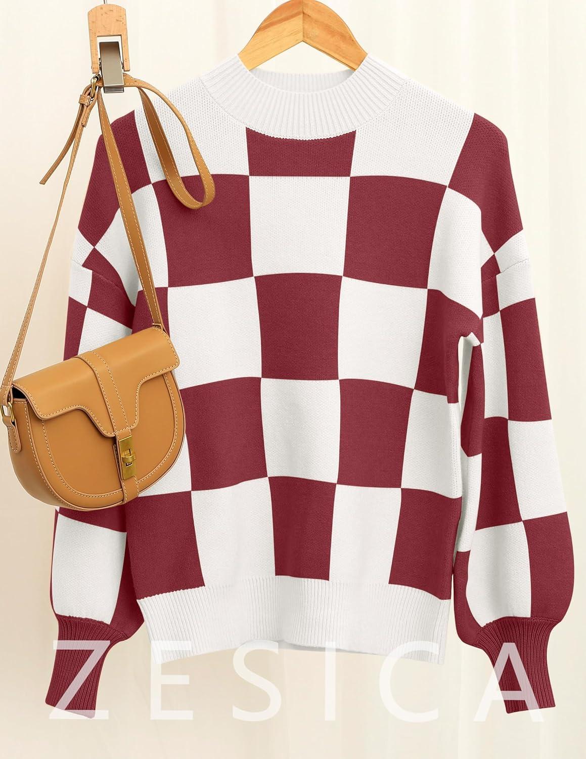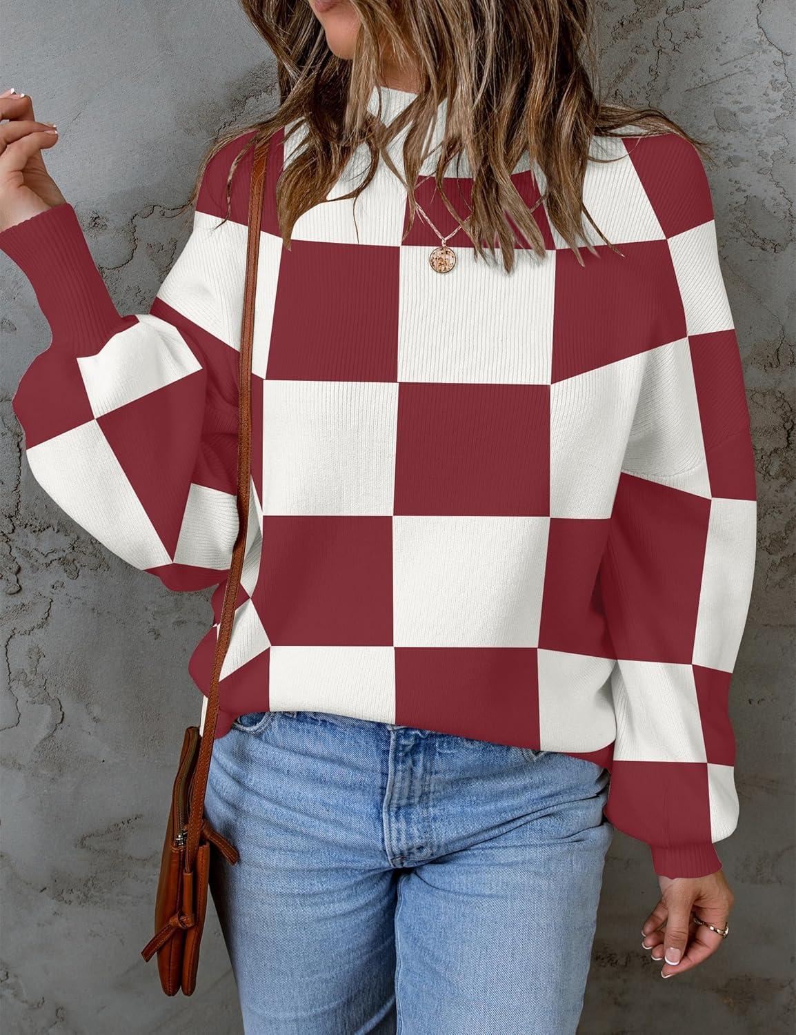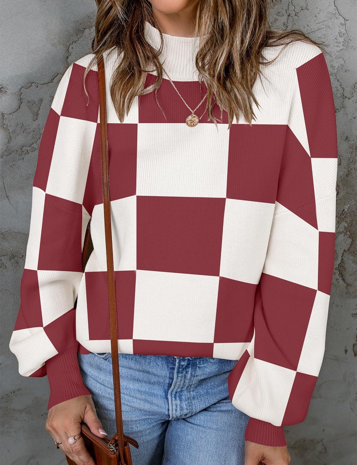 ZESICA Women’s 2025 Fall Fashion Turtleneck Long Sleeve Striped Ribbed Knit Loose Pullover Sweater Tops(Plumplaid)