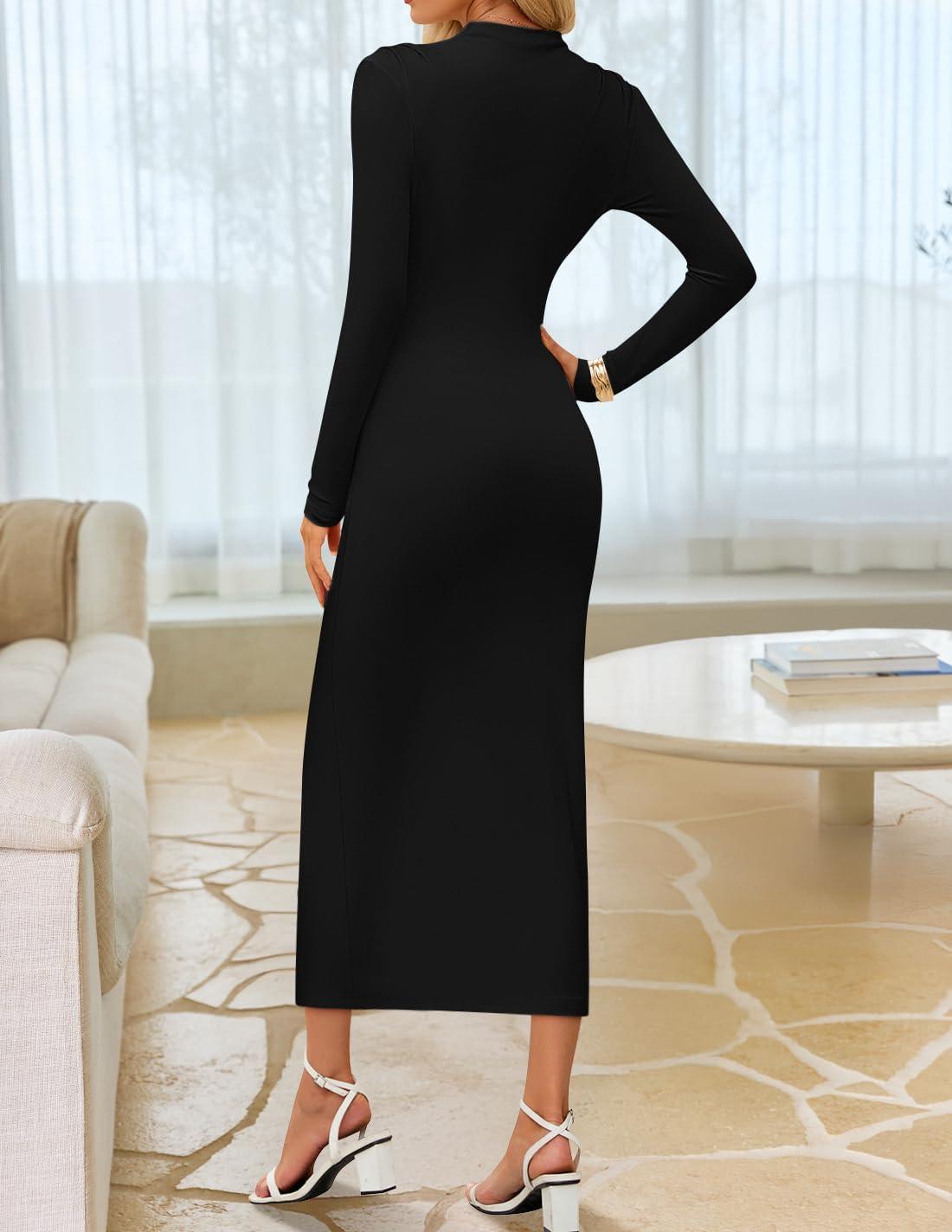 ZESICA Women’s 2025 Fall Long Sleeve Bodycon Dress Mock Neck Party Cocktail Wedding Guest Long Midi Dresses(Black)