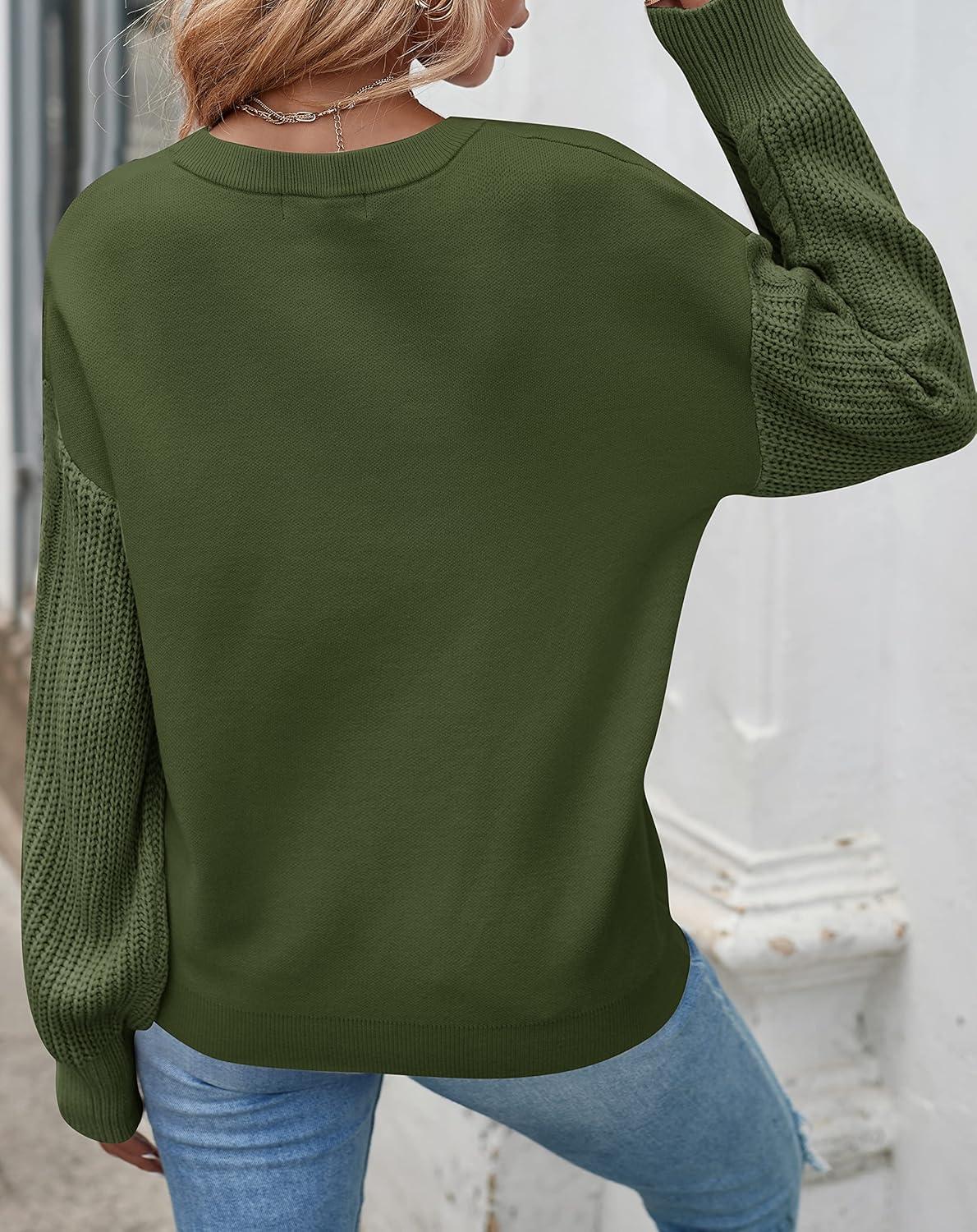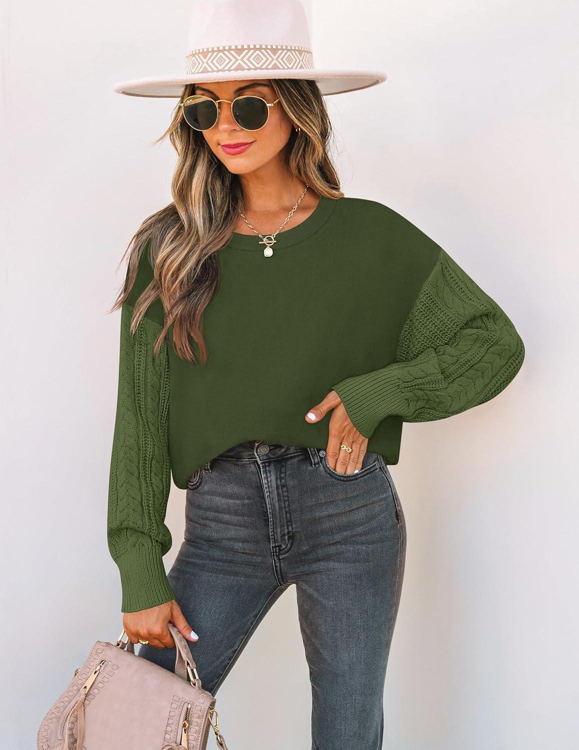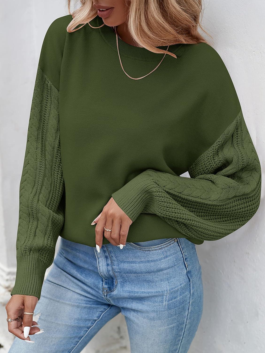 ZESICA Women’s 2025 Fall Long Sleeve Crew Neck Solid Color Cable Knit Chunky Casual Oversized Pullover Sweater Tops(Armygreen)