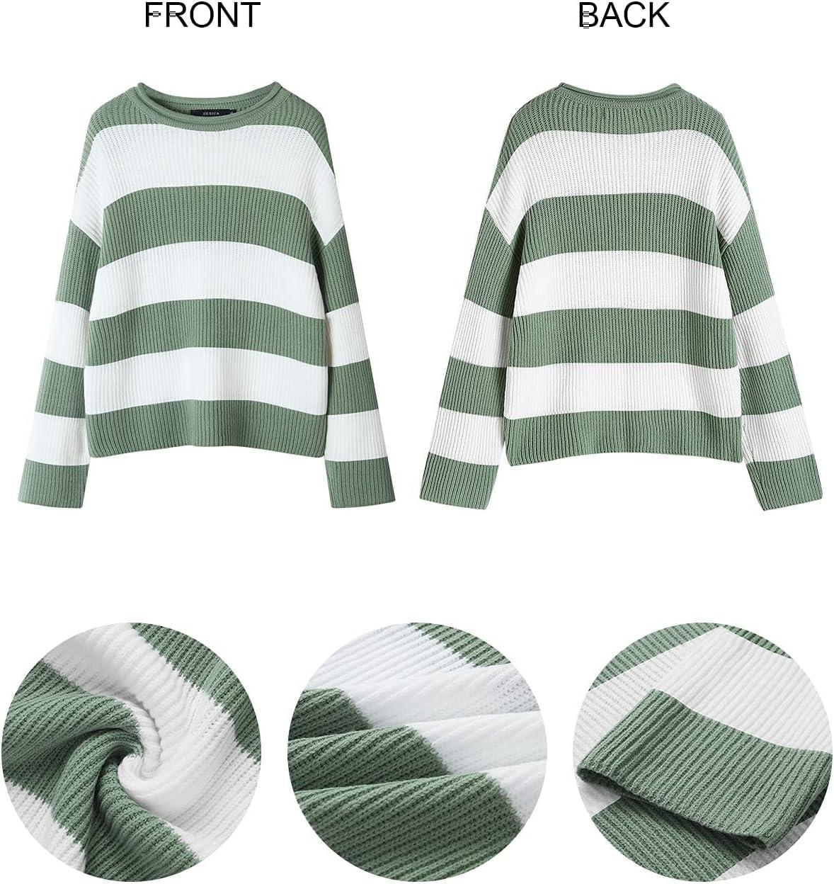 ZESICA Women's 2025 Fall Long Sleeve Oversized Striped Color Block Comfy Loose Crew Neck Knitted Pullover Sweater(Green)