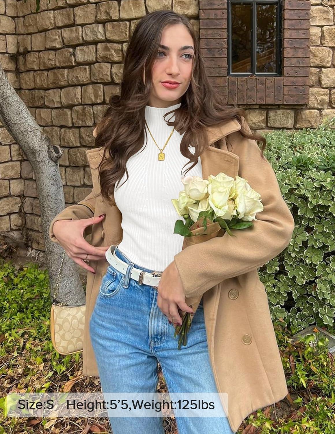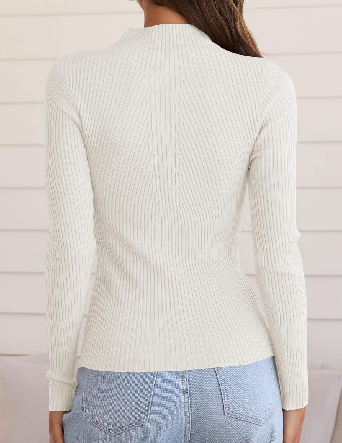 ZESICA Women’s 2025 Fall Long Sleeve Turtleneck T Shirt Ribbed Knit Sweater Slim Fit Basic Casual Tee Tops(White)