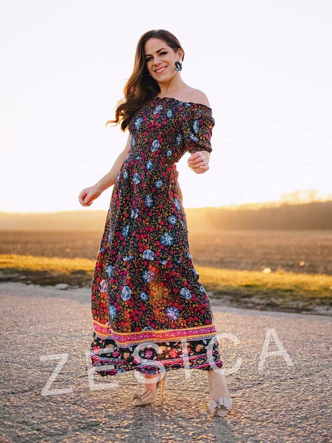 Be the first to review “ZESICA Women’s 2025 Summer Boho Floral Print Square Neck Ruffle Swing Beach Long Maxi Dress(Navy)”