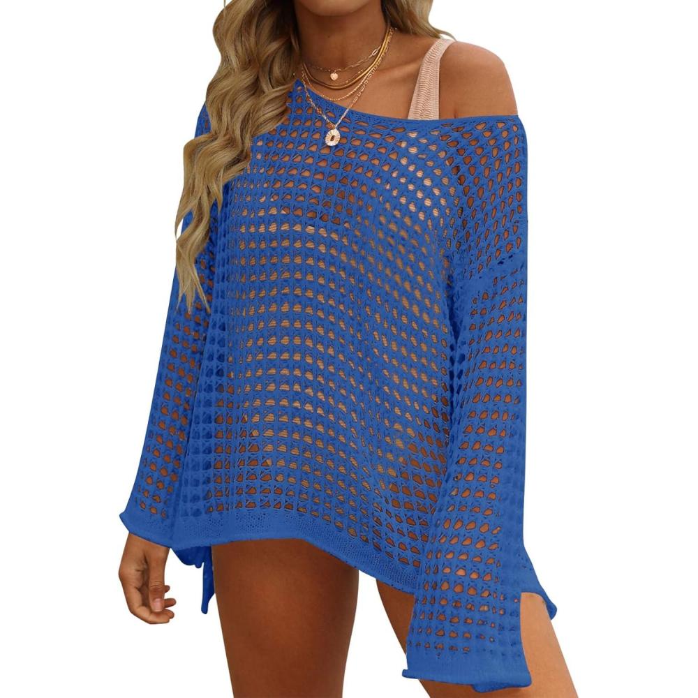 Don’t miss out on our limited-time offer: buy ZESICA Women’s 2025 Summer Crochet Hollow Out Long Sleeve Beach Bikini Swimsuit Mesh Cover Up Tunic Top(Blue), get {accessory} 50% off!