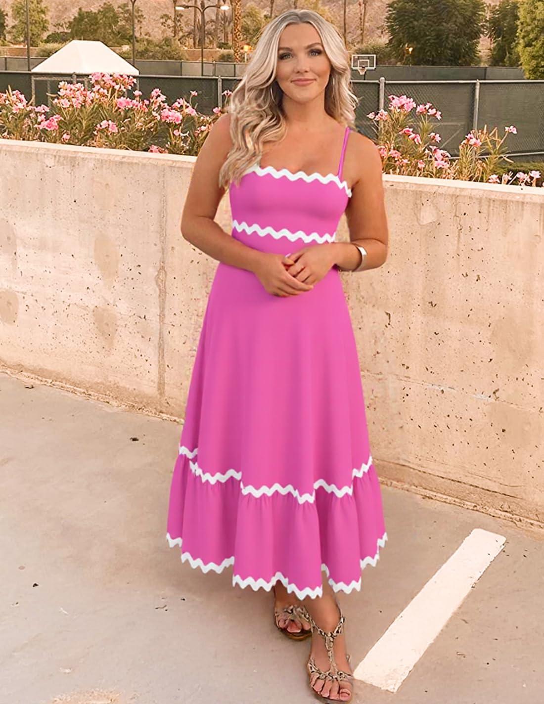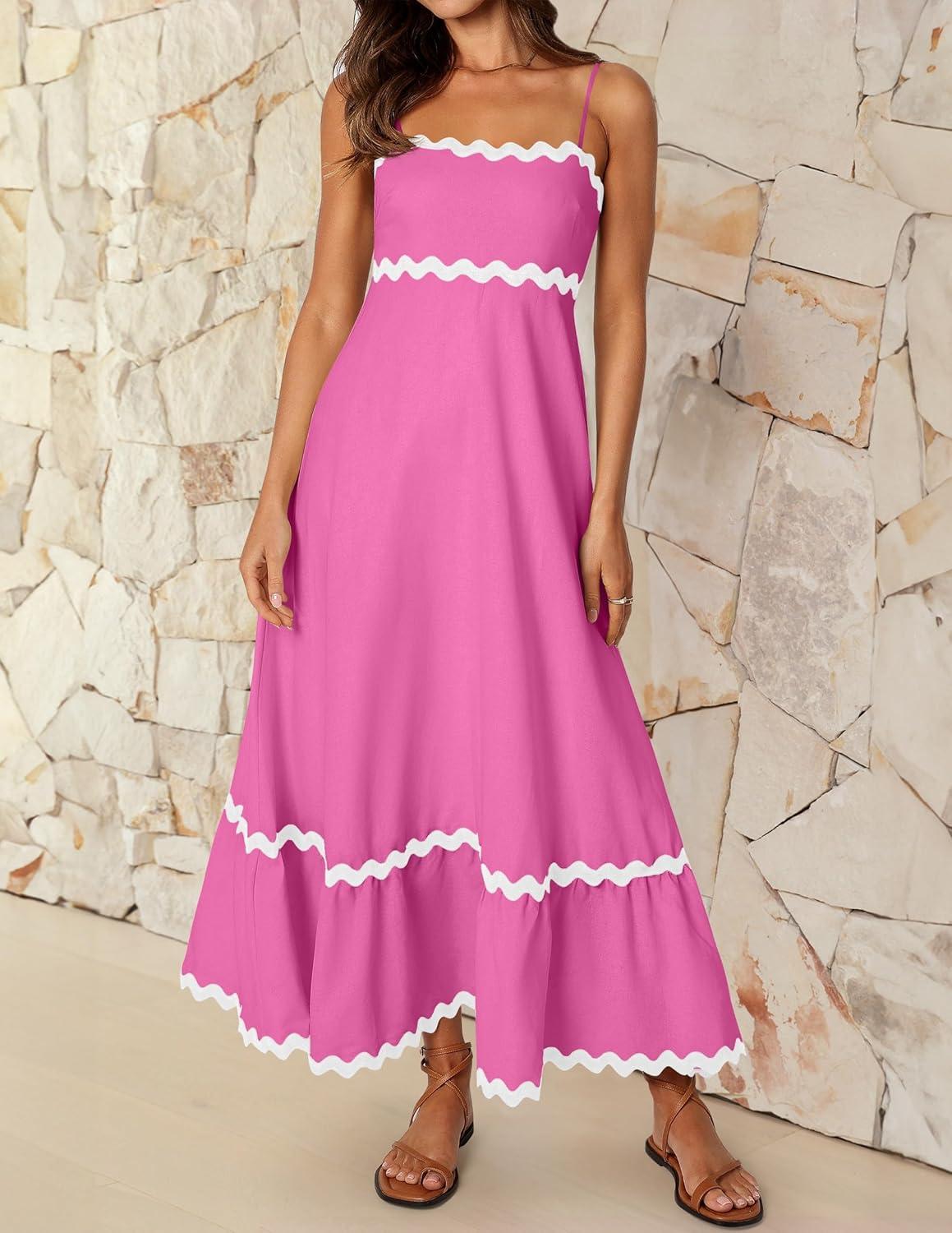 Be the first to review “ZESICA Women’s 2025 Summer Spaghetti Straps Sleeveless Backless Sundress Flowy Smocked Lace Swing A Line Midi Dress(Rose Pink)”