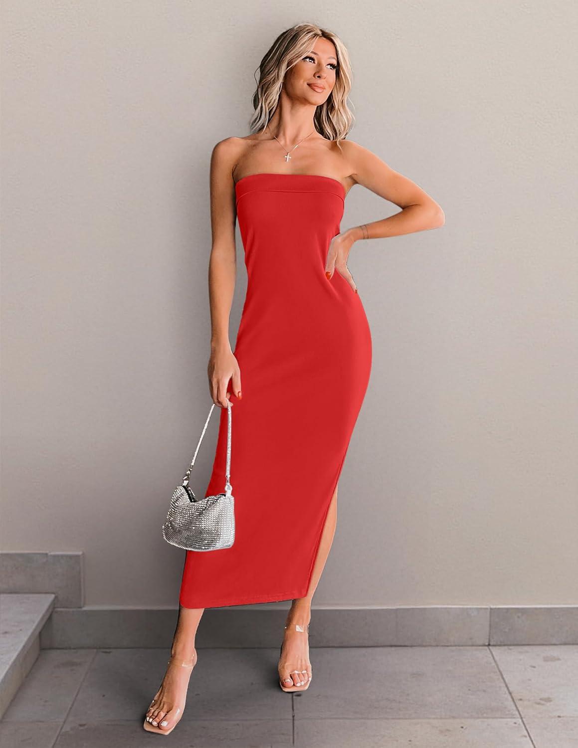 Get your hands on our newest ZESICA Women’s 2025 Summer Strapless Bodycon Midi Dress Off Shoulder Sleeveless Side Slit Tube Long Club Party Dresses(Watermelon) and enjoy a limited-time discount offer.
