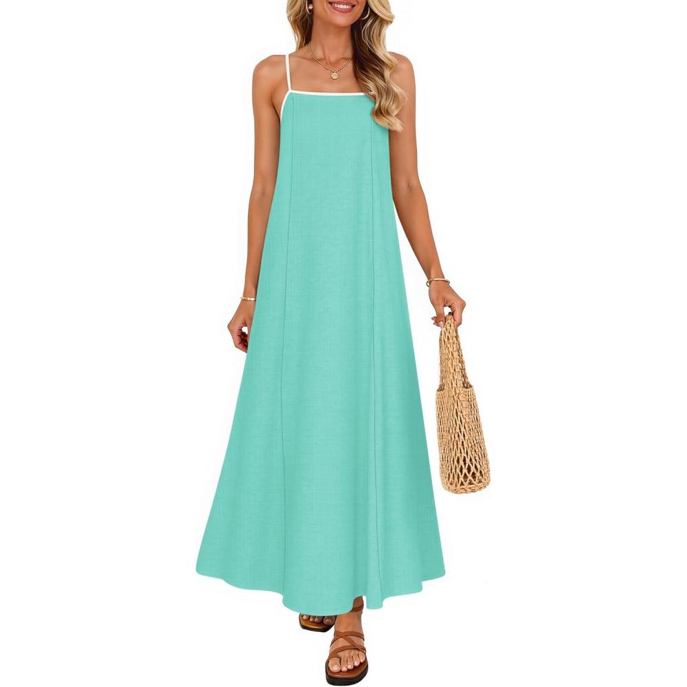 ZESICA Women’s 2026 Summer Boho Sleeveless Maxi Dress Spaghetti Straps Casual Flowy A Line Beach Party Long Dresses(Aqua)