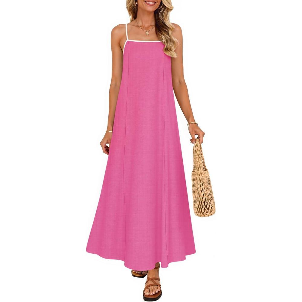 ZESICA Women’s 2026 Summer Boho Sleeveless Maxi Dress Spaghetti Straps Casual Flowy A Line Beach Party Long Dresses(Hot Pink)
