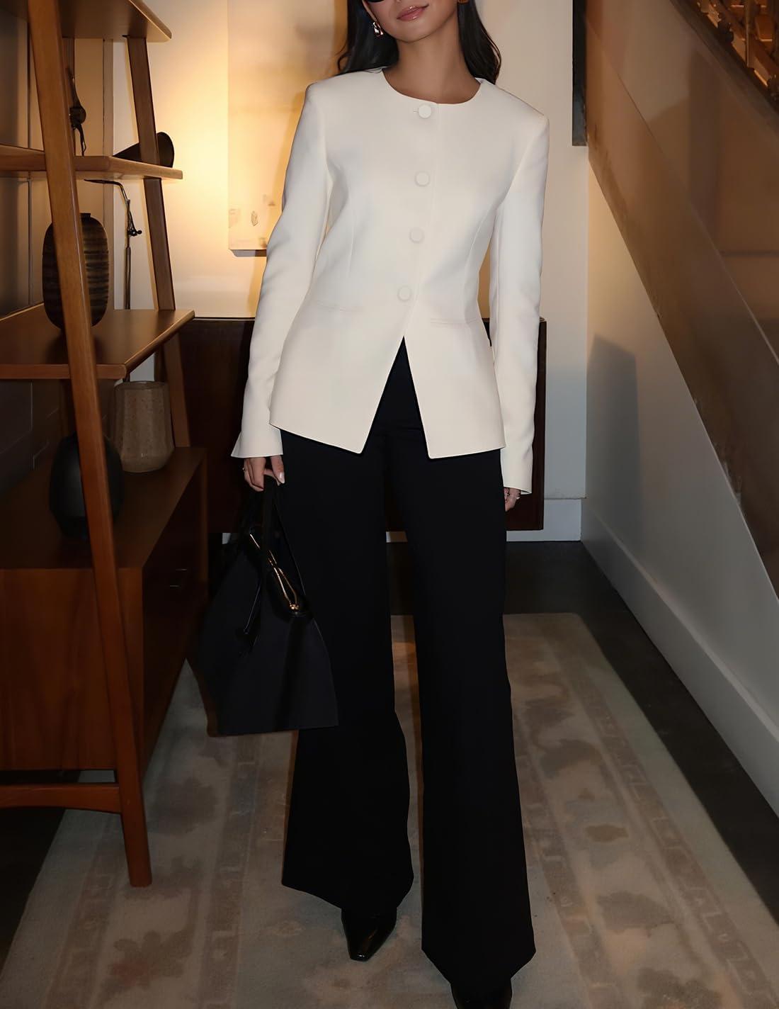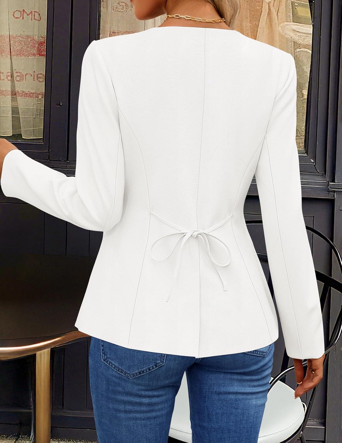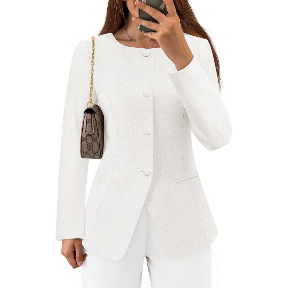 ZESICA Women’s Business Casual Blazers 2025 Fall Long Sleeve Button Down Suit Jackets Open Front Work Blazer with Pocket(White)