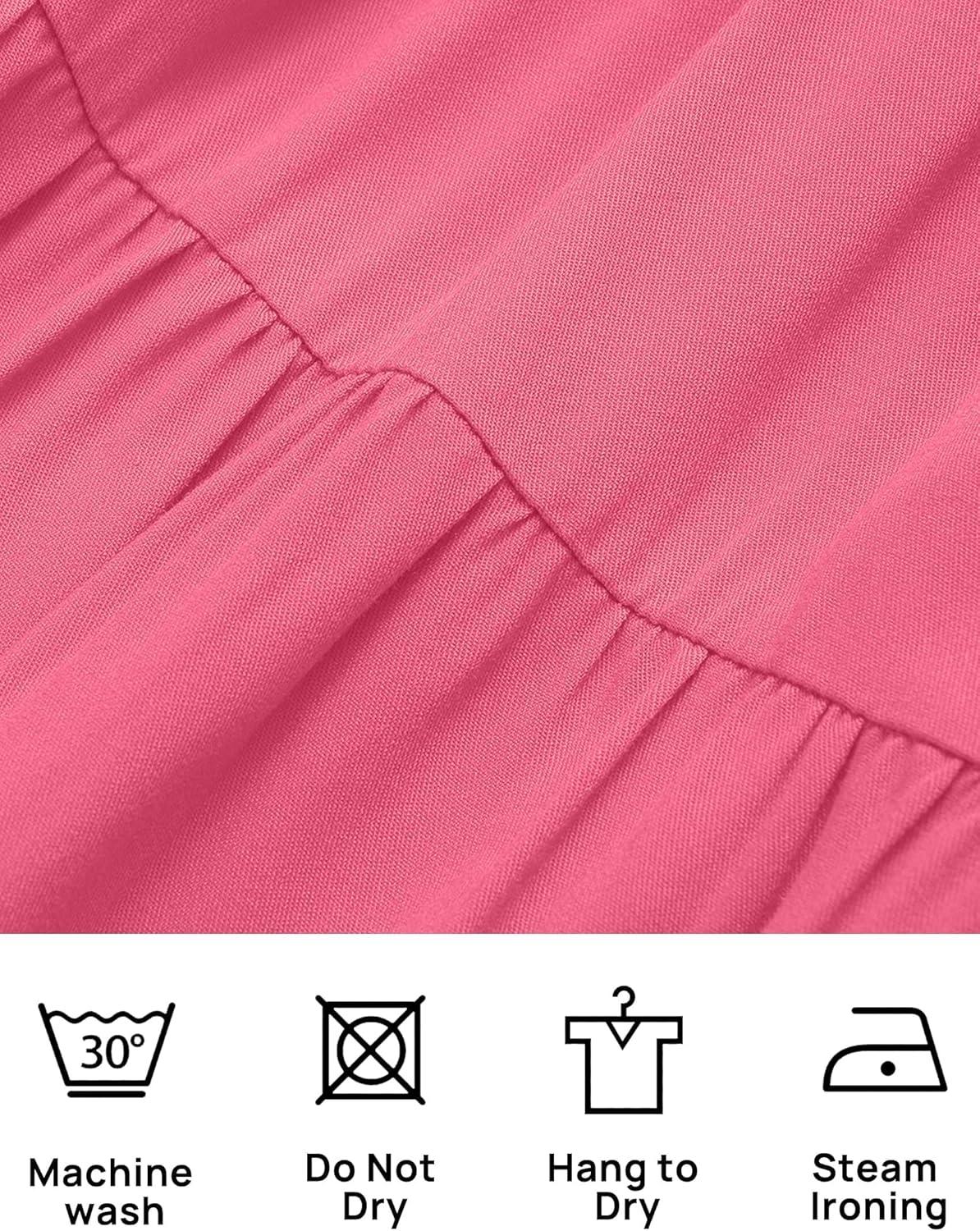 Be the first to review “ZESICA Women’s Casual Crew Neck Flutter Sleeve Smocked High Waist Hollow Out Lace Trim Tiered A Line Midi Dress(Hotpink)”