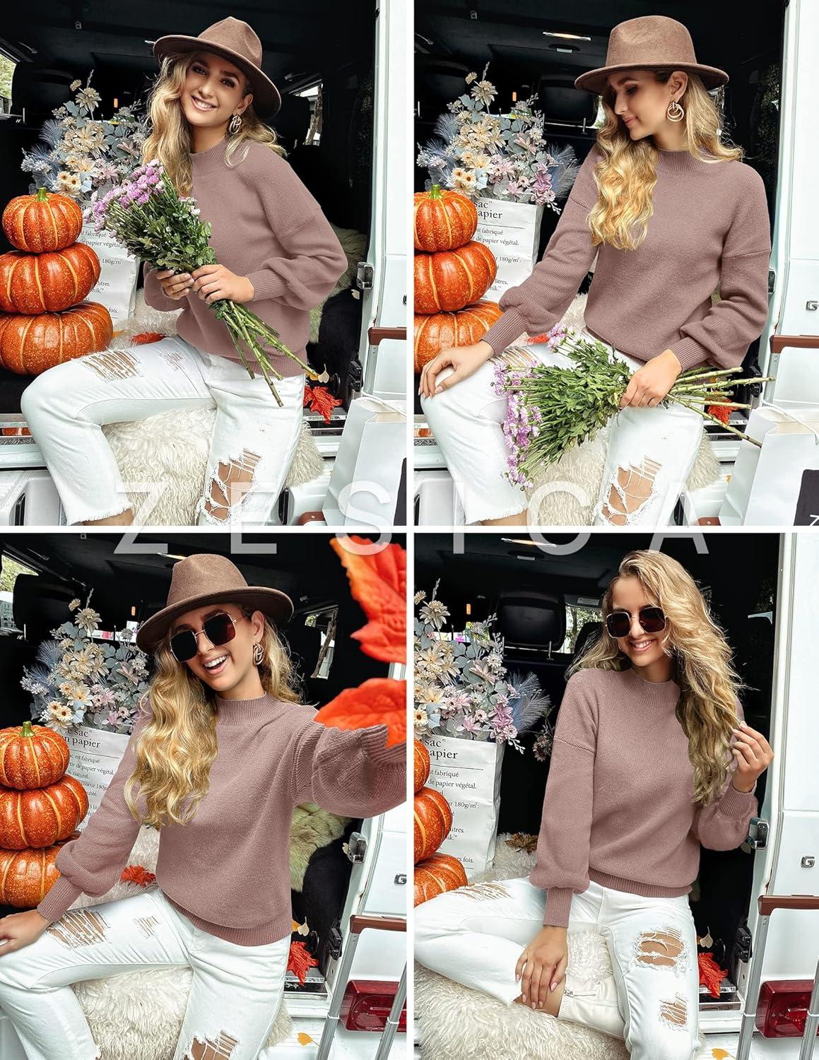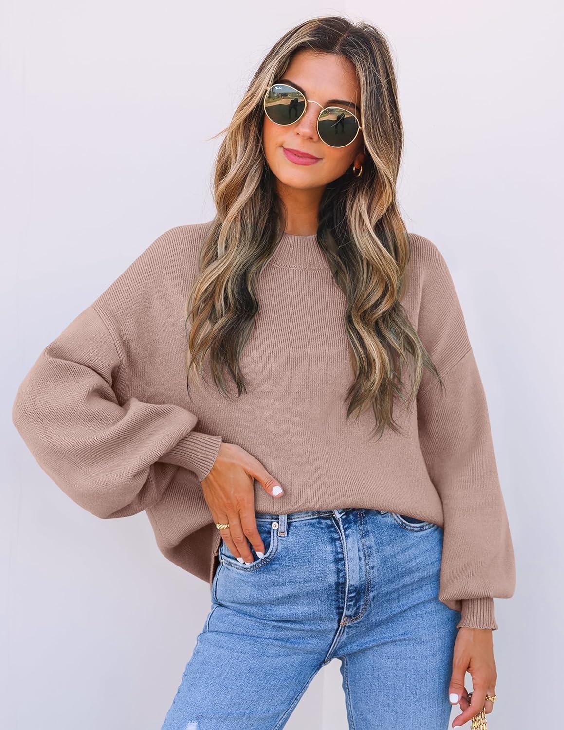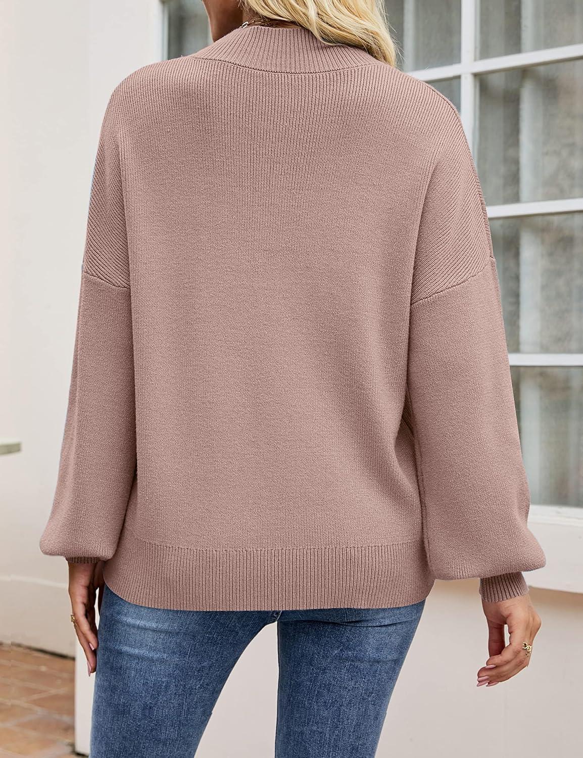 ZESICA Women’s Casual Turtleneck Long Lantern Sleeve Fall 2025 Oversized Ribbed Knit Pullover Sweater Jumper Top(Almond)