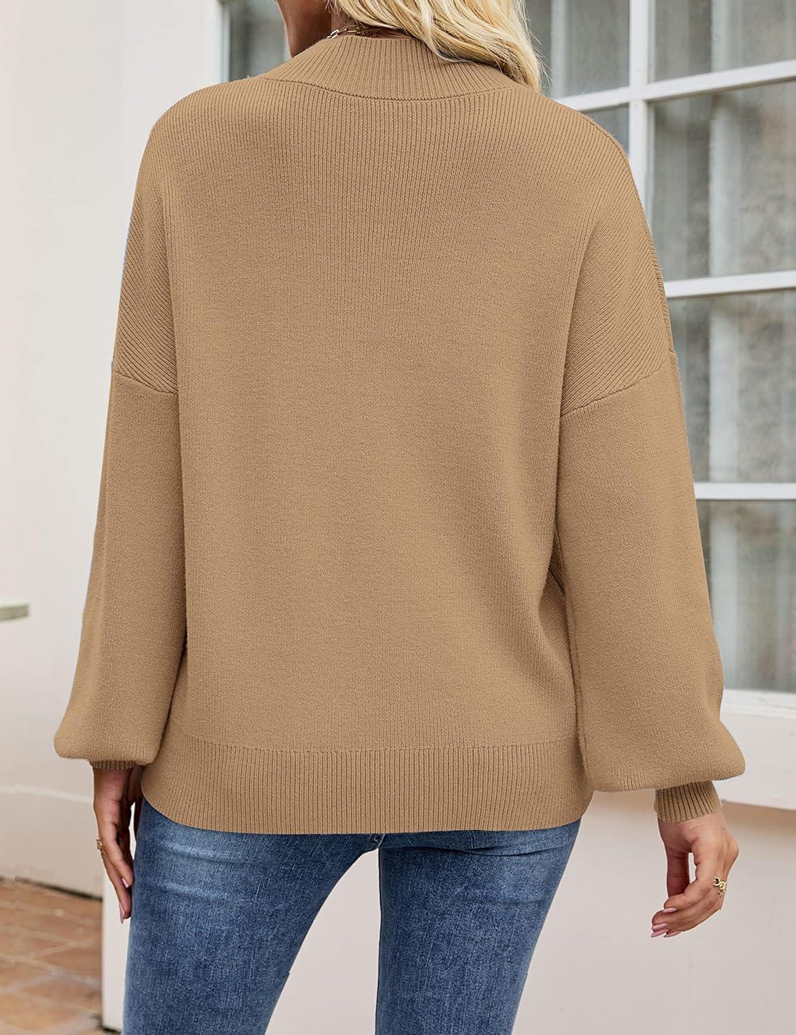 ZESICA Women’s Casual Turtleneck Long Lantern Sleeve Fall 2025 Oversized Ribbed Knit Pullover Sweater Jumper Top(Lightkhaki)