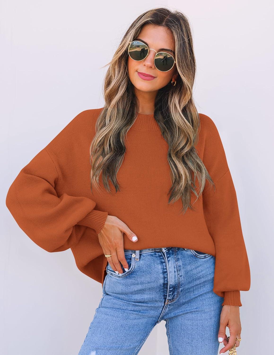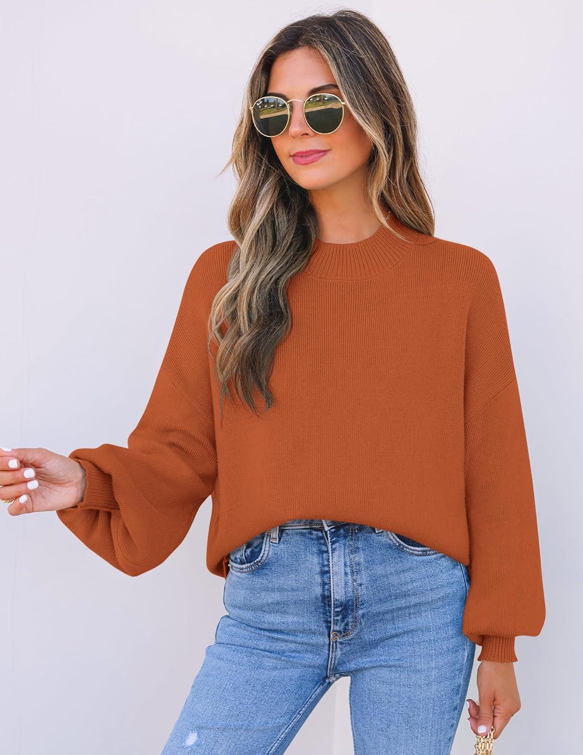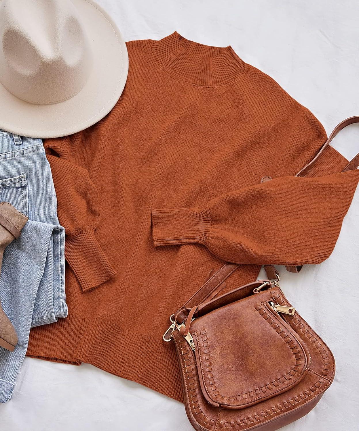 ZESICA Women’s Casual Turtleneck Long Lantern Sleeve Fall 2025 Oversized Ribbed Knit Pullover Sweater Jumper Top(Maple)