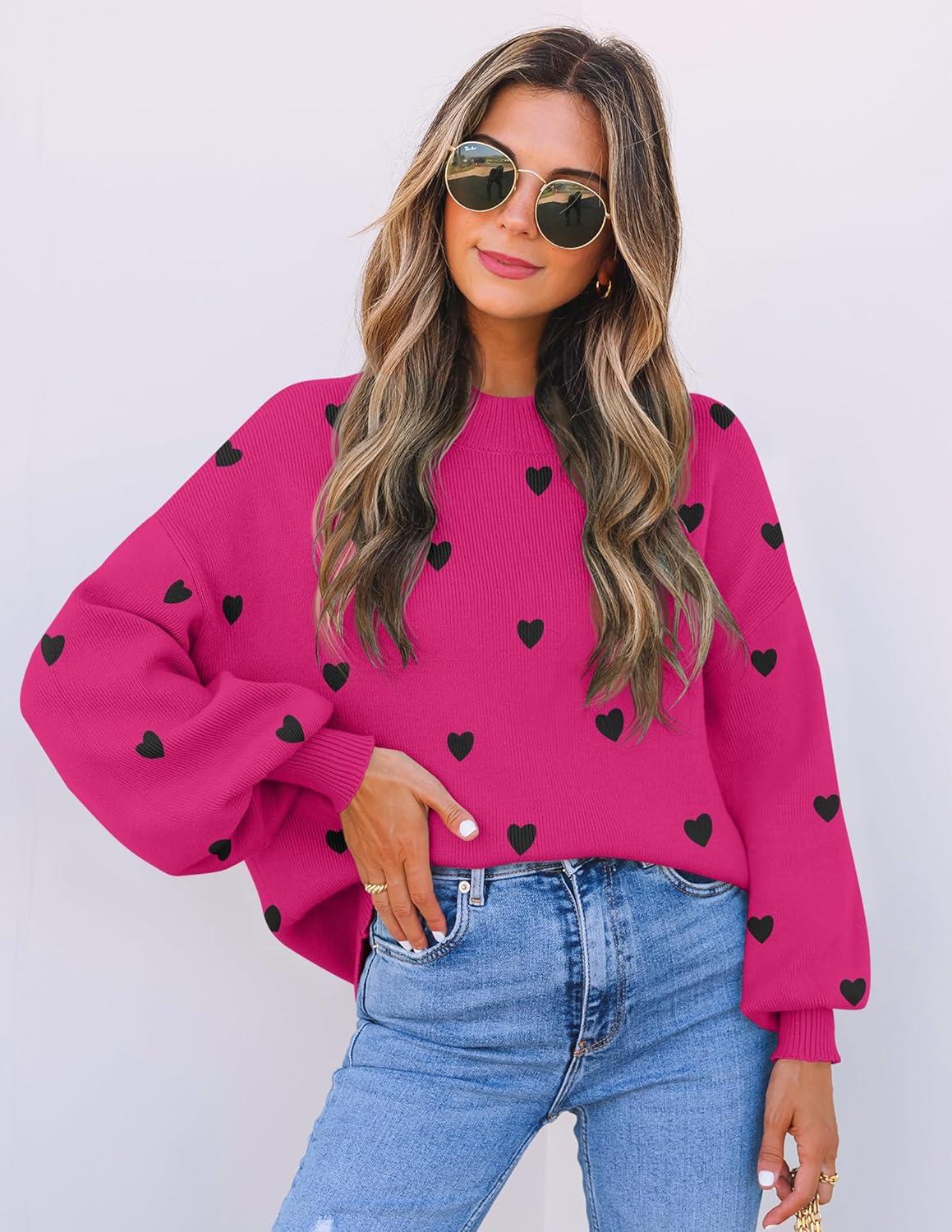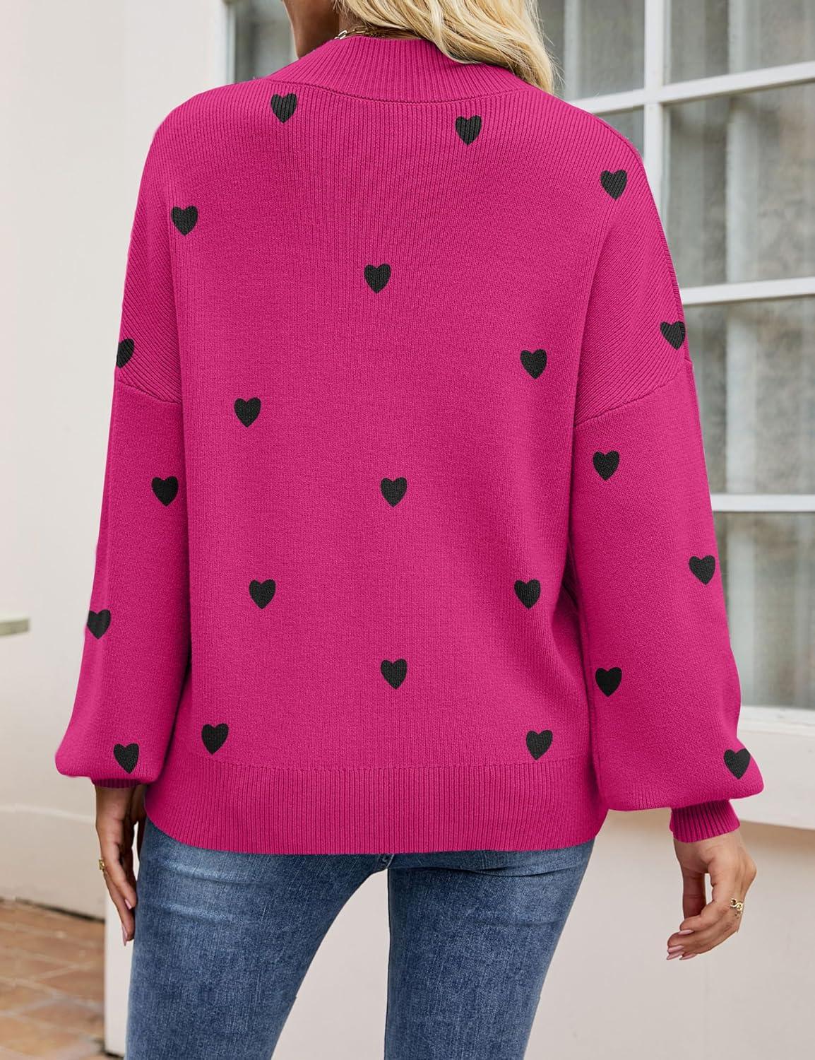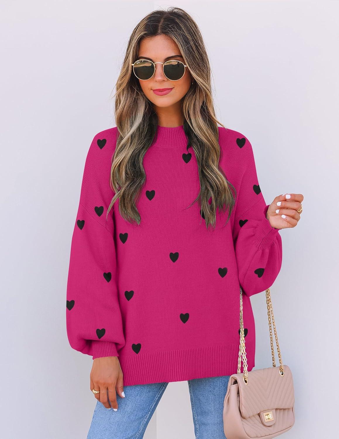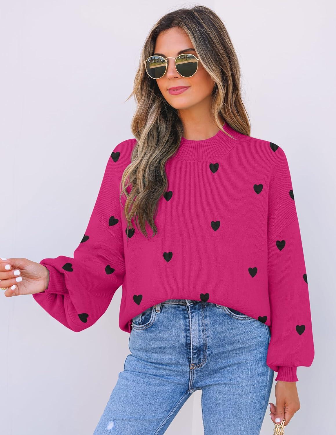 ZESICA Women’s Casual Turtleneck Long Lantern Sleeve Fall 2025 Oversized Ribbed Knit Pullover Sweater Jumper Top(Roseblack)