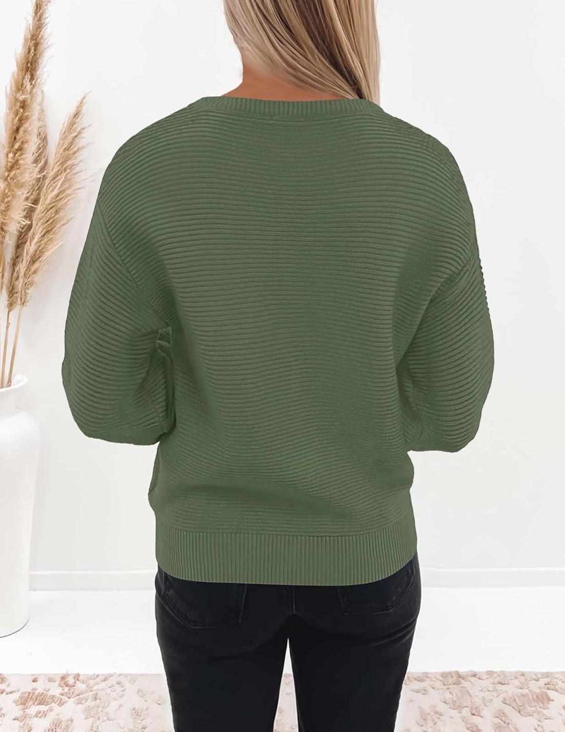 ZESICA Women's Crew Neck Long Lantern Sleeve Fall 2025 Casual Loose Ribbed Knit Solid Soft Pullover Sweater Tops(Armygreen)