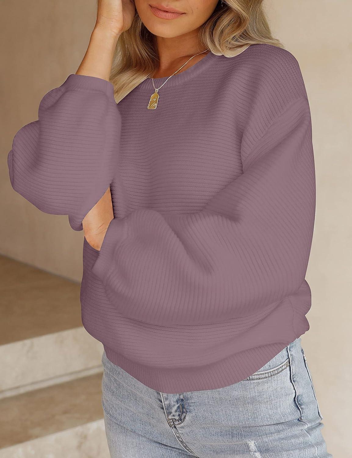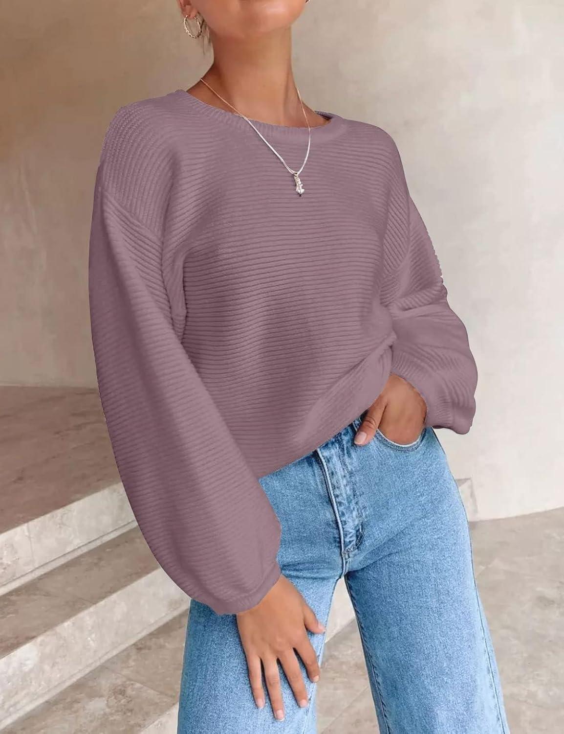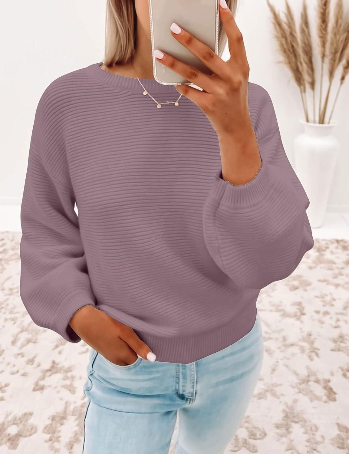 Save big on ZESICA Women’s Crew Neck Long Lantern Sleeve Fall 2025 Casual Loose Ribbed Knit Solid Soft Pullover Sweater Tops(Darkviolet) during our summer blowout sale. Limited quantities available.