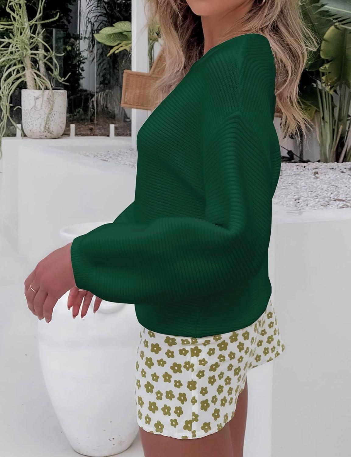 ZESICA Women's Crew Neck Long Lantern Sleeve Fall 2025 Casual Loose Ribbed Knit Solid Soft Pullover Sweater Tops(Forestgreen)