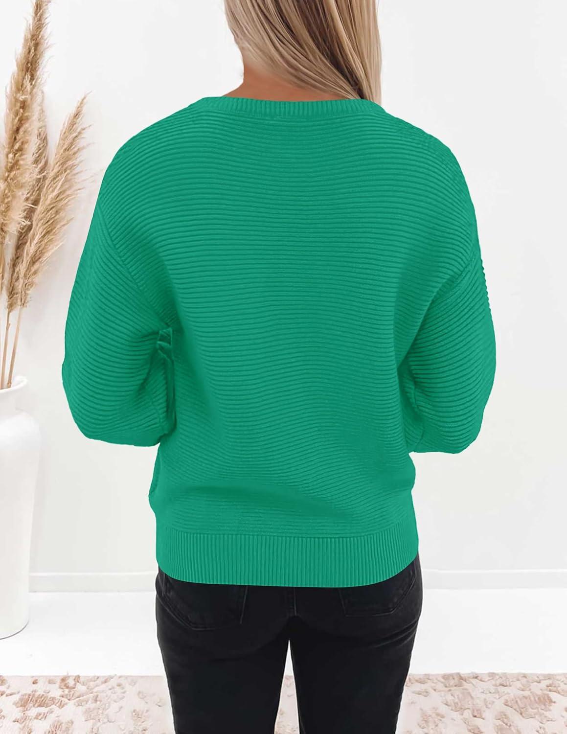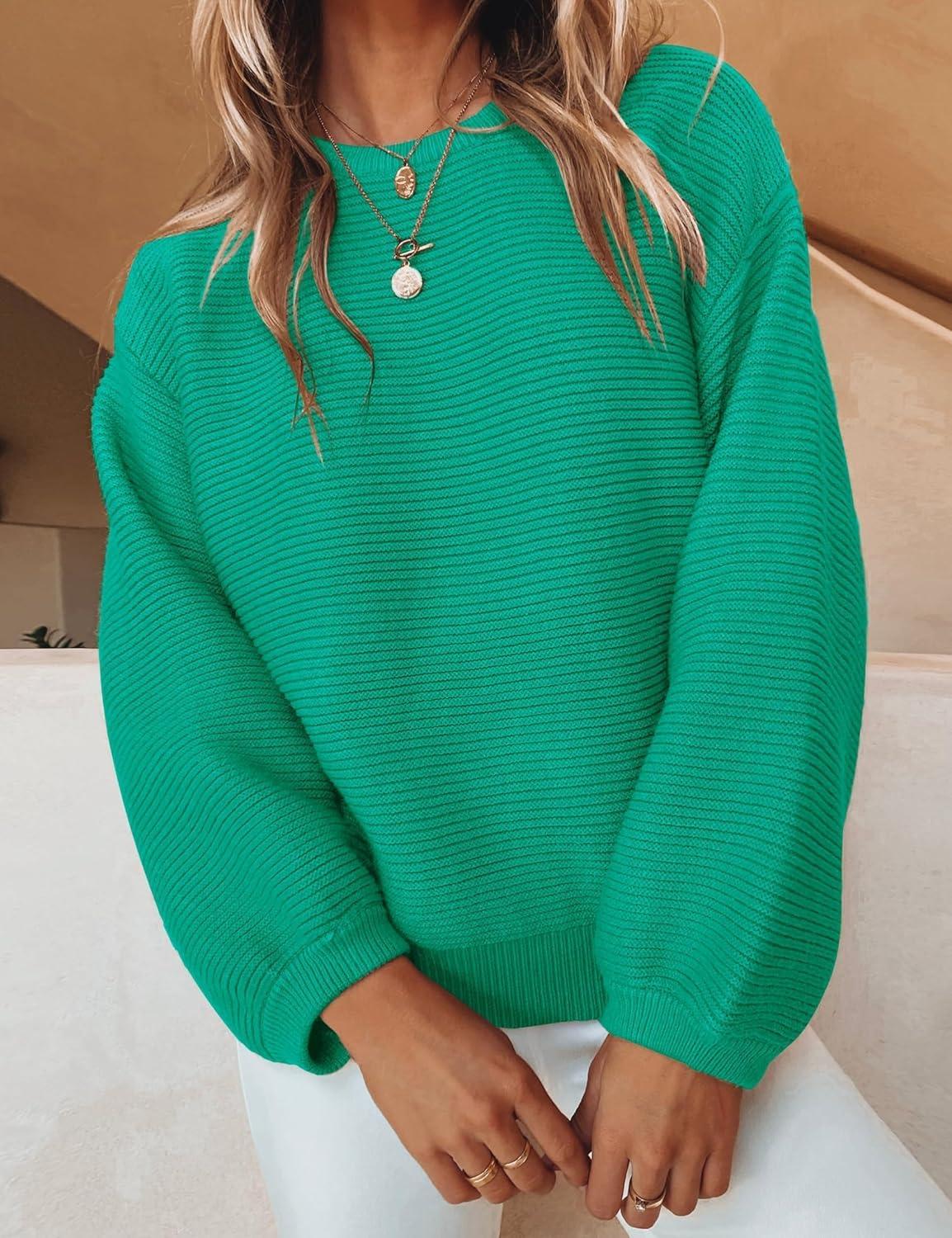 ZESICA Women’s Crew Neck Long Lantern Sleeve Fall 2025 Casual Loose Ribbed Knit Solid Soft Pullover Sweater Tops(Green)
