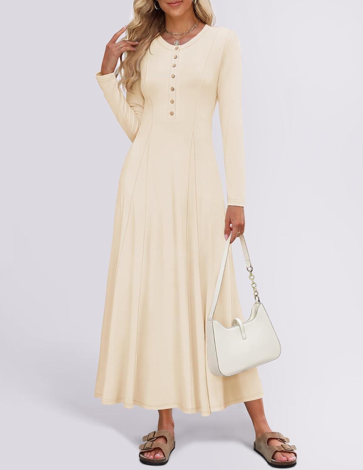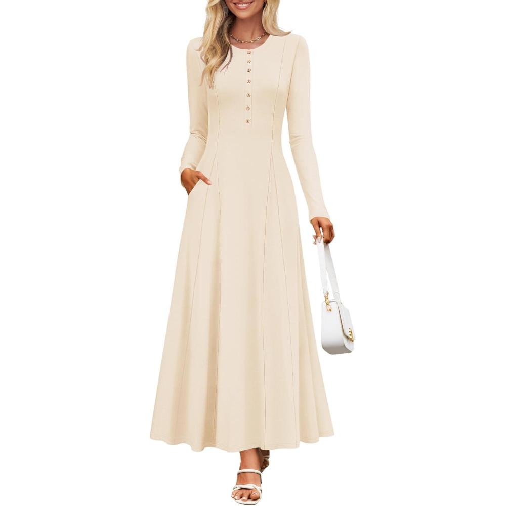 Be the first to review “ZESICA Women’s Elegant Maxi Dresses 2025 Fall Long Sleeve Button Casual A Line Boho Flowy Dress with Pockets(Apricot)”