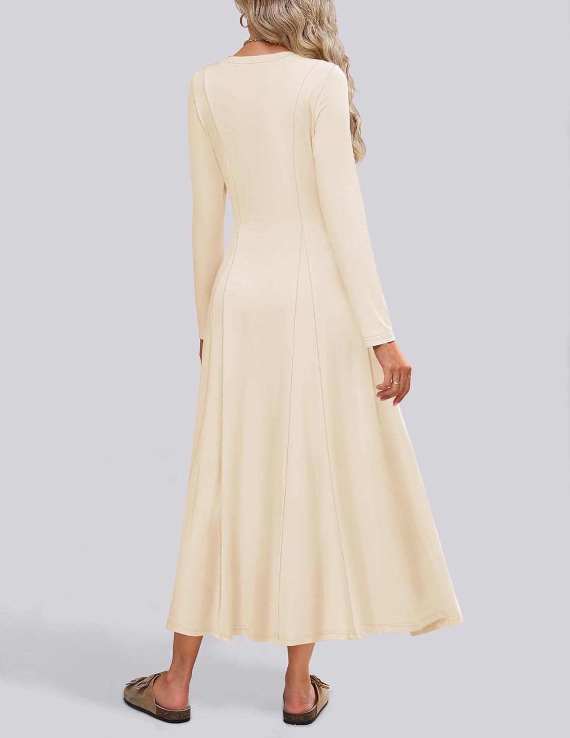 ZESICA Women's Elegant Maxi Dresses 2025 Fall Long Sleeve Button Casual A Line Boho Flowy Dress with Pockets(Apricot)
