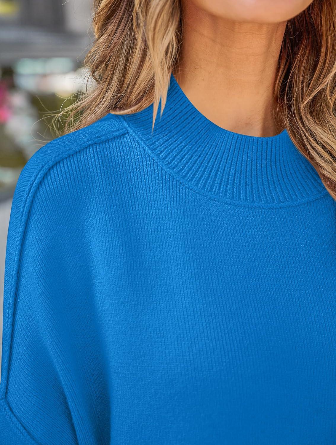 ZESICA Women’s Fall 2025 Casual Long Sleeve Crew Neck Side Slit Oversized Ribbed Knit Pullover Sweater Tops(Brightblue)