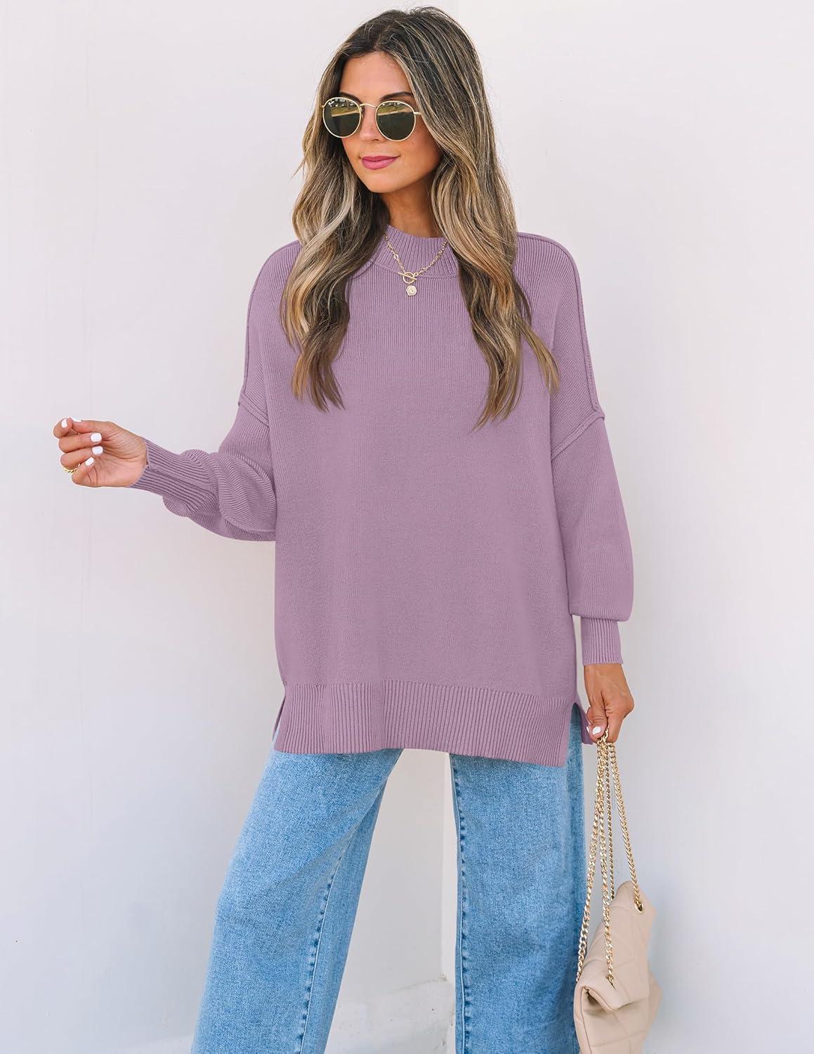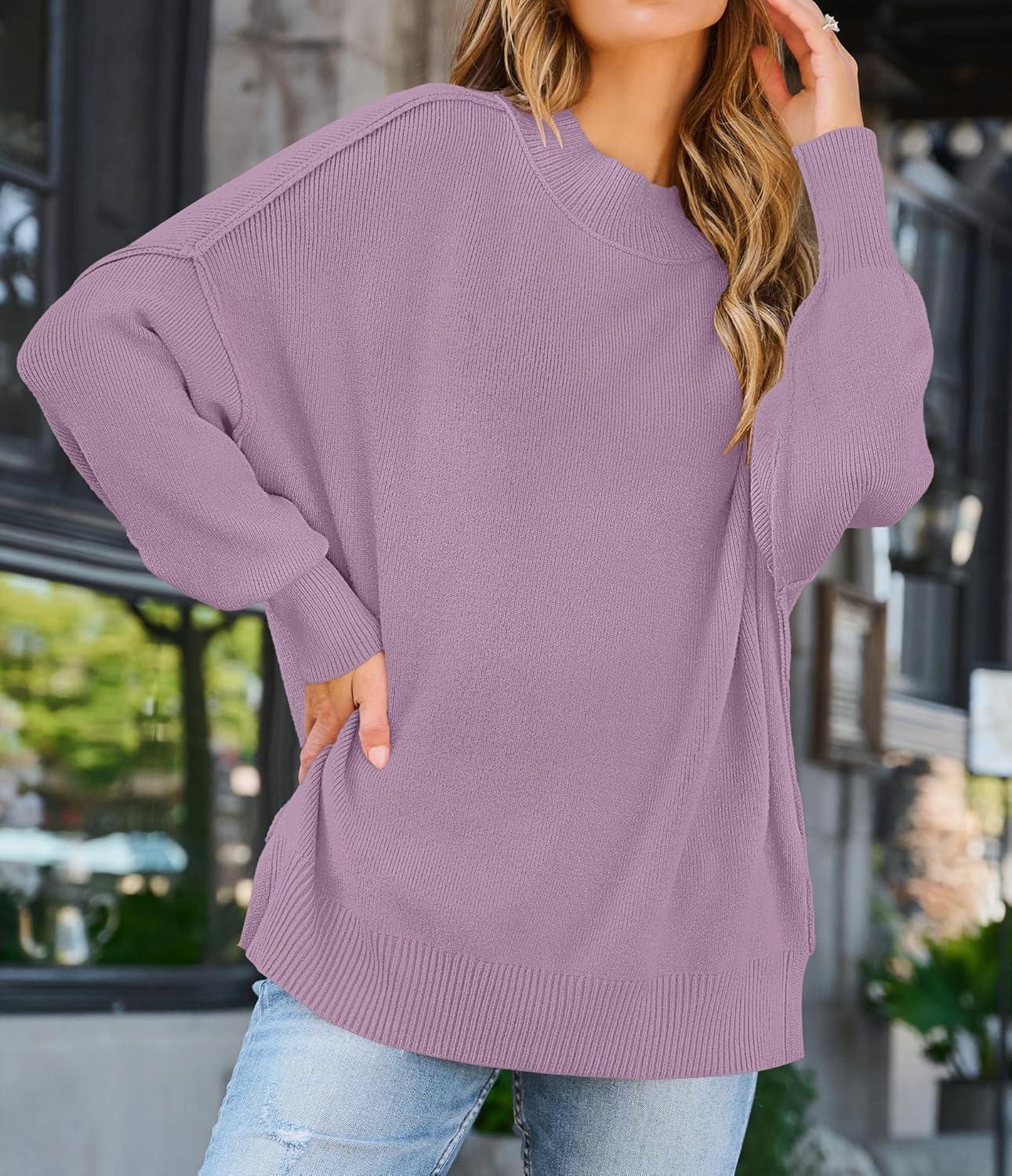 Get the ZESICA Women’s Fall 2025 Casual Long Sleeve Crew Neck Side Slit Oversized Ribbed Knit Pullover Sweater Tops(Purple) you want at a price you can afford with our markdown sale.