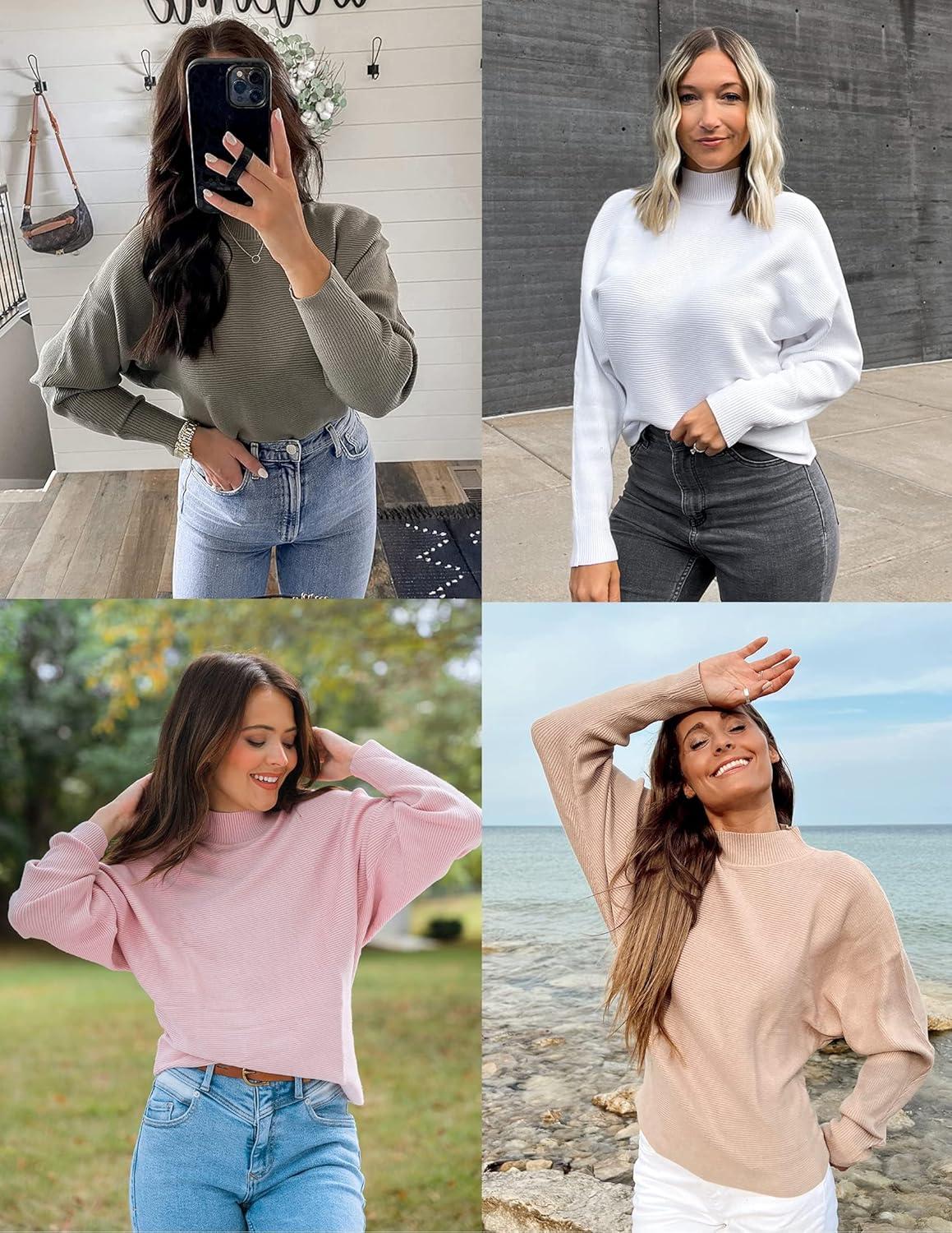 ZESICA Women’s Fall 2025 Turtleneck Batwing Long Sleeve Ribbed Knit Casual Soft Pullover Sweater Jumper Top(White)